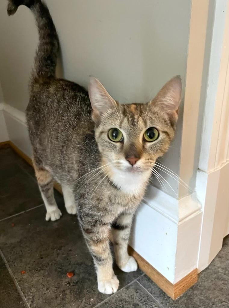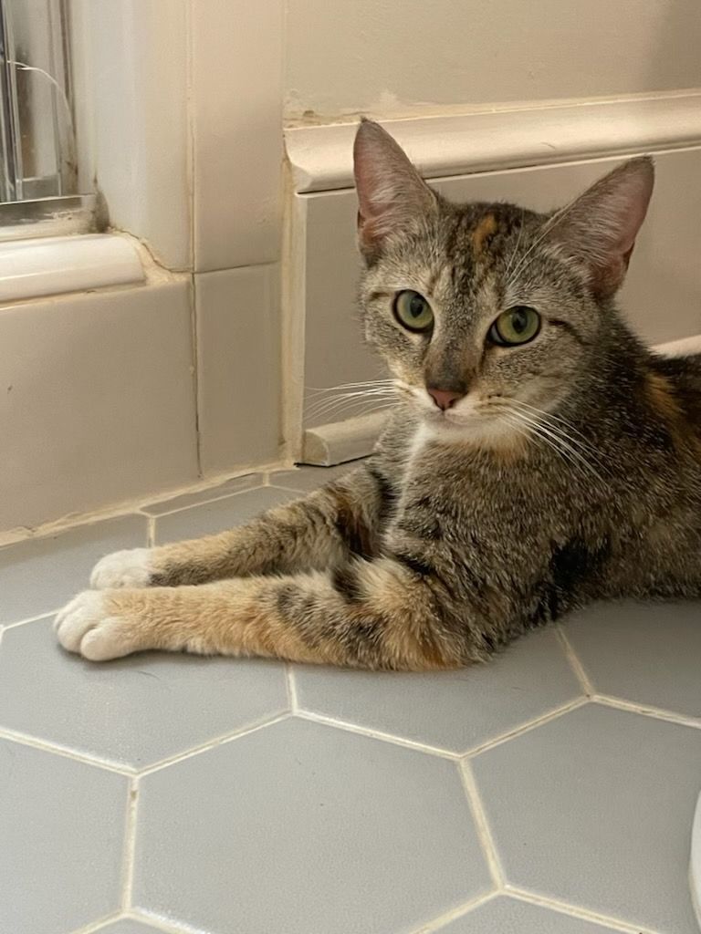 Hi! My name is Pizza! I am a one-year-old female Tabico! My five kittens and I were rescued from life outside. I have been a great mama to my babies! I am shy at first, but I’m very sweet and will warm up to you. I love treats, and I love to be pet! I will let you pet me for a long time. I love to have my neck and lower back scratched. If you start petting my head, I’ll roll over and let you pet my belly! I would do best in a calm, quiet home—I don’t like loud noises. I like older children. I have not been tested with other cats or dogs. I am spayed, up to date on age-appropriate vaccines, tested for FIV/FeLV (negative/negative), and have my microchip. If you are interested in making me a part of your family, please click on the following link to fill out an adoption application www.purringheartsva.org and a volunteer will reach out to you within 72 hours. I hope to hear from my forever family soon!