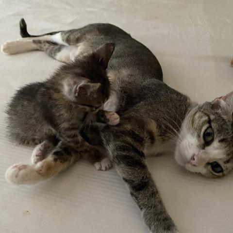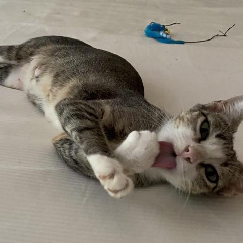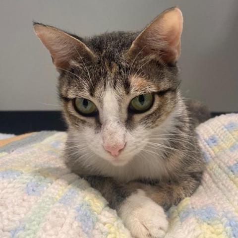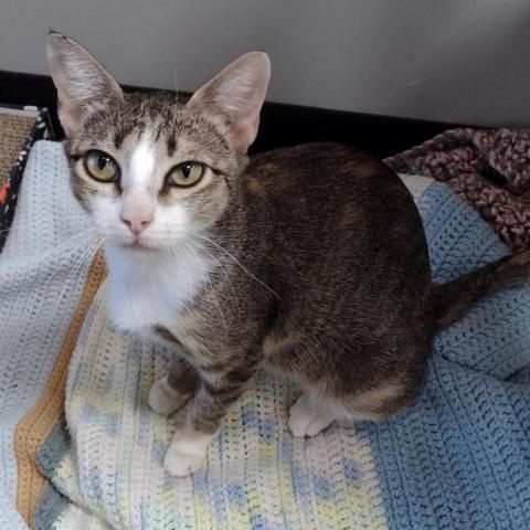 Chill, Kind, Soft Spoken Meringue is so sweet! And we are talking about the kitty, not the delectable dessert, though our Meringue wins because she is a sweet treat 24/7/365! She is softly affectionate, and will come to you for pets, asking with her quiet meow. She also gives the best leg hugs! Meringue came to APA! with her SEVEN (!) kittens, which right away puts her in the running for Momma Cat of the Year. So she has been too busy tending her babies to be very interested in playing! She mainly enjoys chilling out, gazing out a window, maybe taking a lap around the house to explore things, and having a well-deserved catnap. She is happy to lay next to you or find some quiet place on her own. She has a calm, friendly, and happy nature! Meringue is a quiet lady, though she will chat to ask you for pets or food. She likes to scratch and would do well with a horizontal scratcher. Meringue is long and lean - shes all legs and tail! She carries herself like a model cat, truly elegant. She has a beautiful calico coat, and eyes that give her the look of an angel. Meringue would love a home with window perches, and with people to hang out with, give hugs to, and gets pets from! She is a total sweetheart. Contact us today to arrange a meet & greet! All APA! cats are fully vetted, spayed or neutered, and have updated vaccines and a microchip. Lifetime support is offered by our Cat Behavior Team. For further information or to meet Meringue, please email adopt@austinpetsalive.org.
