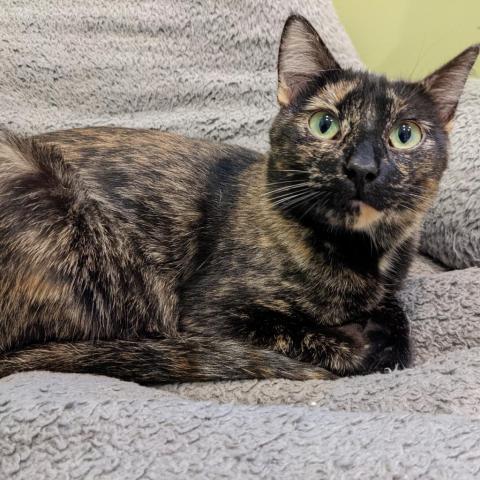 Dorothy is a wonderful gremlin! Shes got tortetude! She loves to play and is friendly. No small kids as she can play rough. She is sweet, good company, playful and funny. She loves Frank and I would love to see them adopted together. They play so well and she gets her energy out with him. He is a shy kitty and she helps him with confidence in interacting with humans. They snuggle and groom each other. She loves our dog Fern and would love to play with her but fern is too nervous. She has previously marked when new cats were introduced, but has not with the introduction of our last 3 fosters here. I think with a slow acclimation she will do well in that aspect. She is UTD on her immunizations, is spayed, microchipped and is FELV negative. Her adoption fee is $145. Please contact Luckypawsmidwest.org to fill out an application