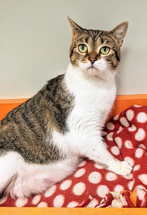 Lacey Lou Female - White and brown tabby - DOB - 10/5/19 I really do have the most beautiful face, dont I? I have stolen the hearts of so many people around here but the right person hasnt seen me yet. Perhaps you may know someone that needs me in their life? (hint hint!) The other cats in the room dont pose much of a problem for me, in fact, Ive made some really good friends already. So, dont let that keep you from coming to see me! I cant wait to meet you!!