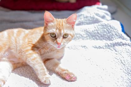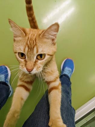 Carina Female - Orange - DOB 9/30/21 - FELV+ "Im just a baby!" Ok, maybe a teenager cat, but still very young. Yes, Im FELV positive. Yes, my immune system isnt as strong as others. But hey, I still have to live my own life. I just need a brave person willing to love me for as long as they can. Im going to climb you, follow you, meow at you, rub on you, talk to you, sit on you, play with you, and be rather incessant until you start filling out the paperwork. Thats all we need, to be together!!