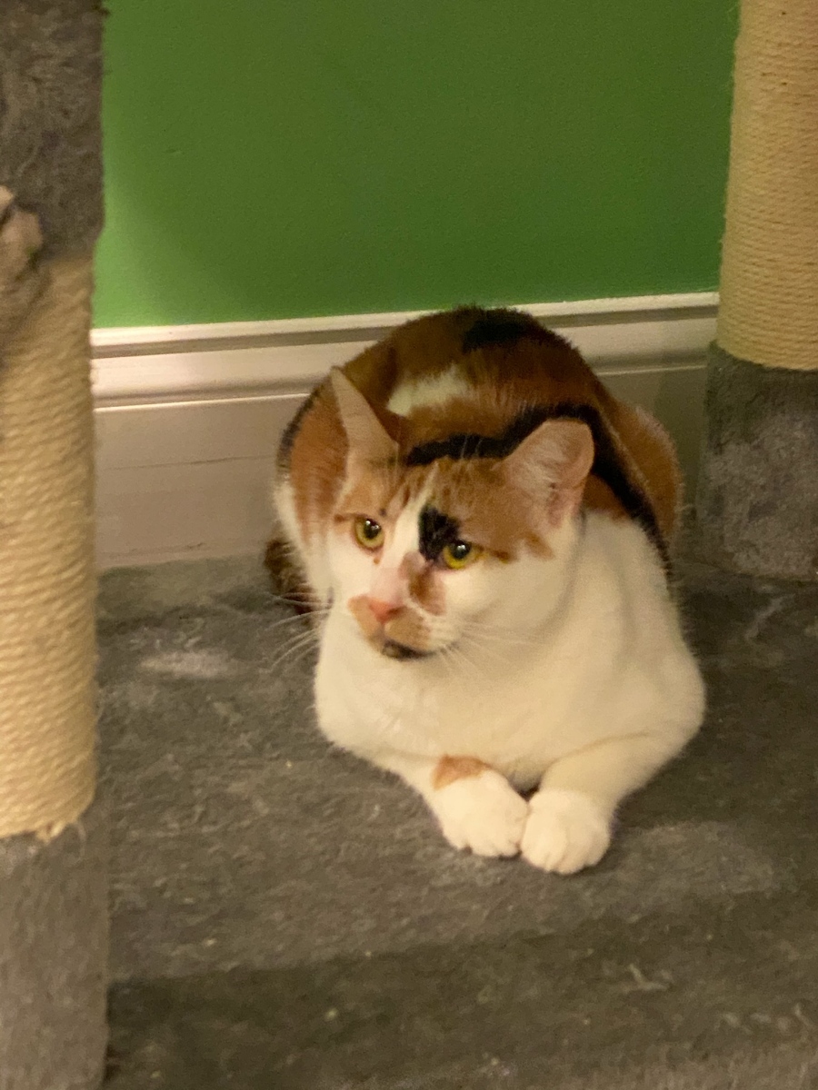 Snickers is a one year old female calico, all vetted that needs to be adopted. Her foster home can no longer keep her. She has come a long way, and is quite comfortable being in a home, interacting with other cats, likes to sleep in bed with teenage children, apprehensive with a large dog and can become skittish with loud noises. This beauty can be visited in the Berkeley heights home. Please contact dapsanimals@gmail.com for more information.