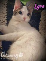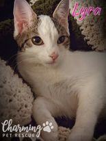 Lyra is sweet, gentle and loves to be affectionate towards humans and very playful. She is truly a sweet lap kitty and napping with her humans. All kittens are spay/neutered and vaccinated through Charming Pet Rescue when age appropriate.