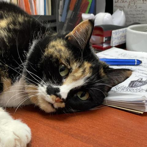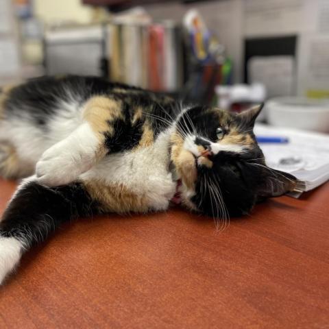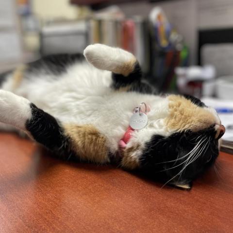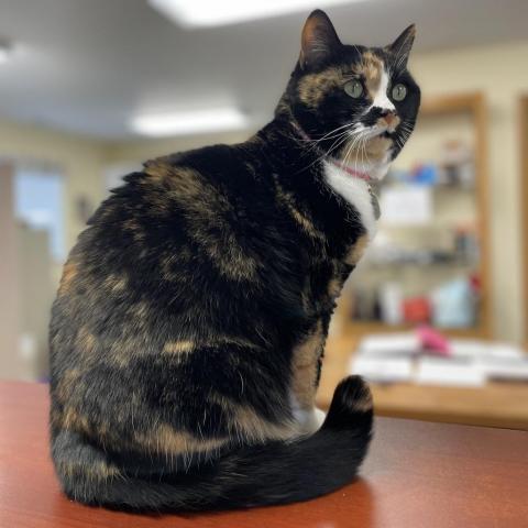 Payday is our current office cat. This means she loves nothing more than spending time having her humans wait hand and foot on her every need, and not having to spend much of that time sharing that with any other of the four-legged kind. She is your typical cat, if you will. Payday will show herself for feeding or when SHE wants fuss. and will let you know when she feels like that time has passed. If shes not out and about fulfilling her office duties, then you can find her in her royal suite getting some much-needed beauty sleep. Although she does occasionally tolerate the smaller kinds of the two-legged species, we are sure she would prefer a home where she can rule like the queen she truly is, with little interference.