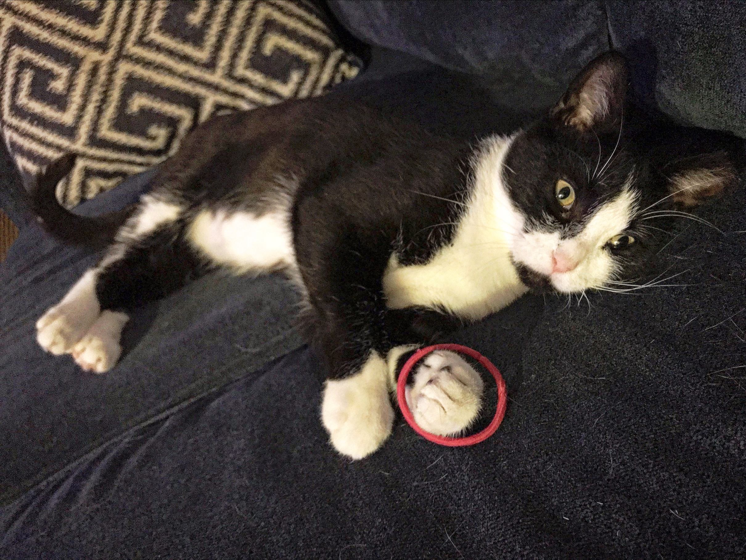 Peppa is a 2 year old girl, who came to our rescue in April, pregnant and living outside and scared of humans. She hid most of the time and very timid when out in the open. She had 4 babies who helped her open up a bit, gain her fosters trust. She was a wonderful mom to her babies. Now that the babies have all been adopted Peppa has really come out of her shell. Shes letting us pet her, loves head scratches! Despite being in foster with a large dog and 3 other cats, she keeps to herself, sun bathing in the cat tree most the time. She would likely do well in a quiet home where shes an only cat, or another that likes to keep to themselves. She is very treat motivated. Potential adopters should be mindful she will be timid but will come along at her own pace. Shes still young and loves to play. Since bringing her in, she has not tried to return outdoors either, she seems to enjoy the comfort of a home. She is spayed, up to date on shots and microchipped. Adoption fee $250 If you are interested in adopting please apply here: https://cambridgehomelesscatrescue.ca/adoption-application-form/