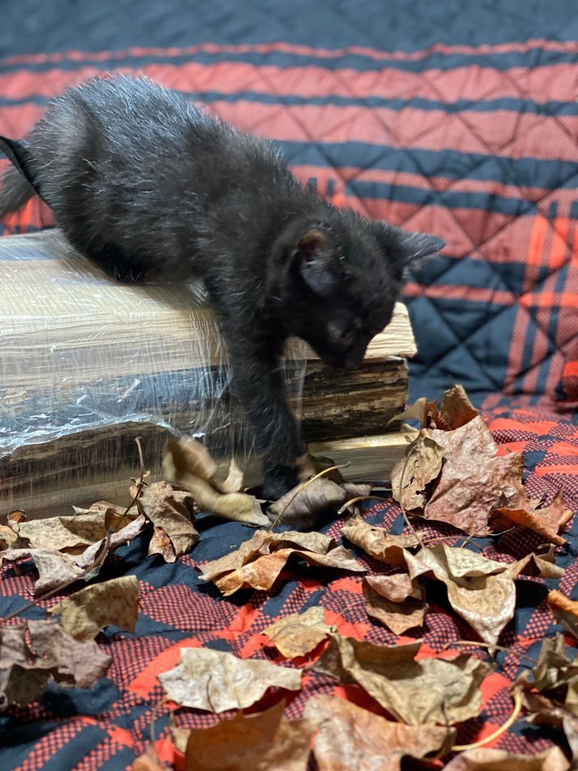 Emily is the sweetest kitten! She loves following her bigger siblings into any adventure and really enjoys her meals. This Ready For Fall kitten won’t ghost you! She comes running when she hears the rustle of a footstep. She is very playful, but definitely appreciates a warm leg to rest on. Emily would love to have you carve her likeness into an orange gourd on your porch! Please don’t let Emily get lured into the woods by a pretty song! She’s waiting on YOU to apply for her adoption! Emily is looking for a home in the greater Charlotte area. For more information or to meet Emily, please send an email to: cattyshack.fm@gmail.com. Or to fill out an application, please go to: https://www.mynextpet.com/cat-application