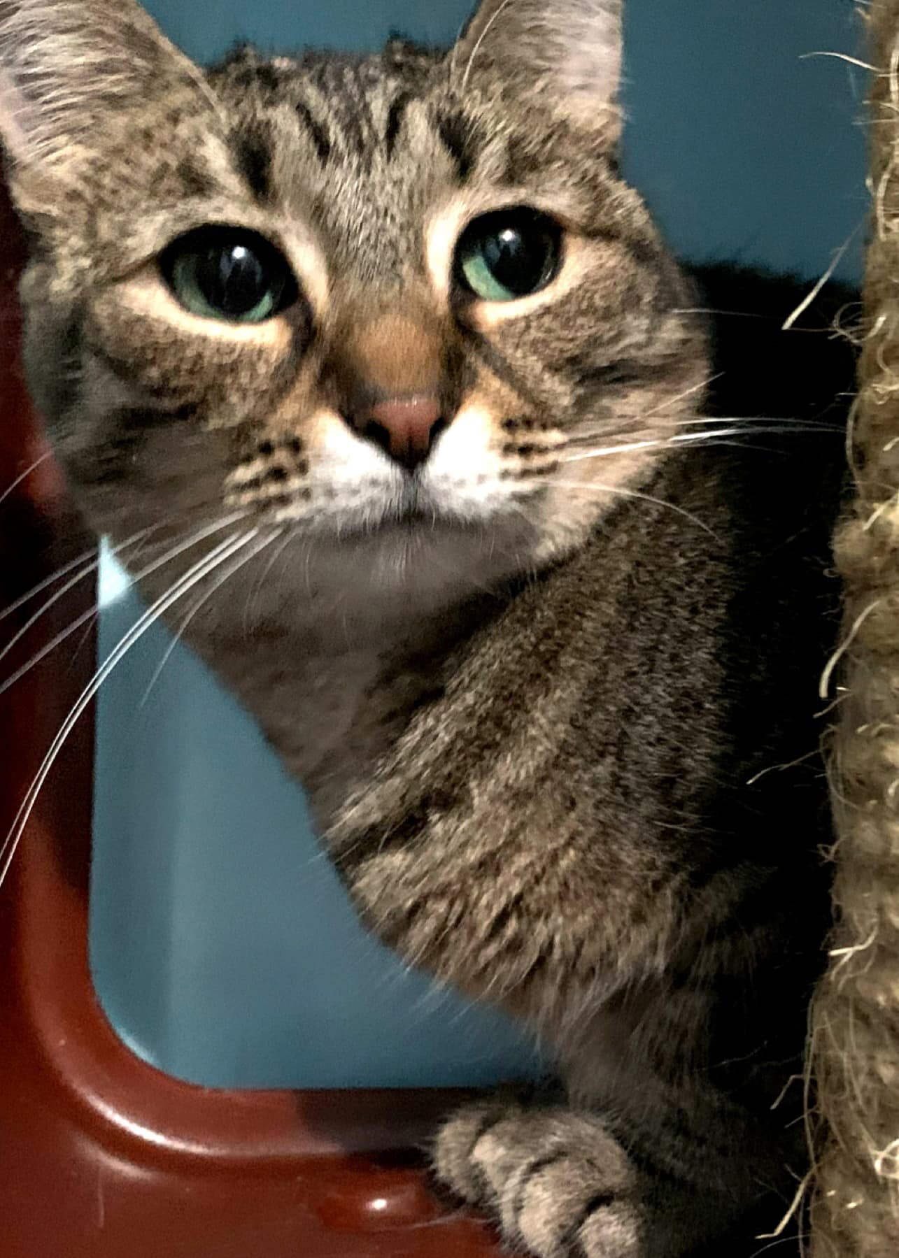 Mandi 5 years old Female Brown Tabby Mandi is an incredibly cute gal that gets along well with other cats. She is sweet and petite, with a gentle nature. Mandi may need a little time to settle into her new home. She would need a patient adopter who can give her what she needs to feel comfy and cozy while she gets her feet wet and learns her new surroundings! She has been with us for a while and will likely be a little confused when she first arrives. Tasty wet food will be the way to her heart! Oh, and a nice cat tree next to a window where she can watch the world go by would make her happy too! Fill out an application for Mandi online: https://form.jotform.com/202214857624050 www.ebcatproject.org