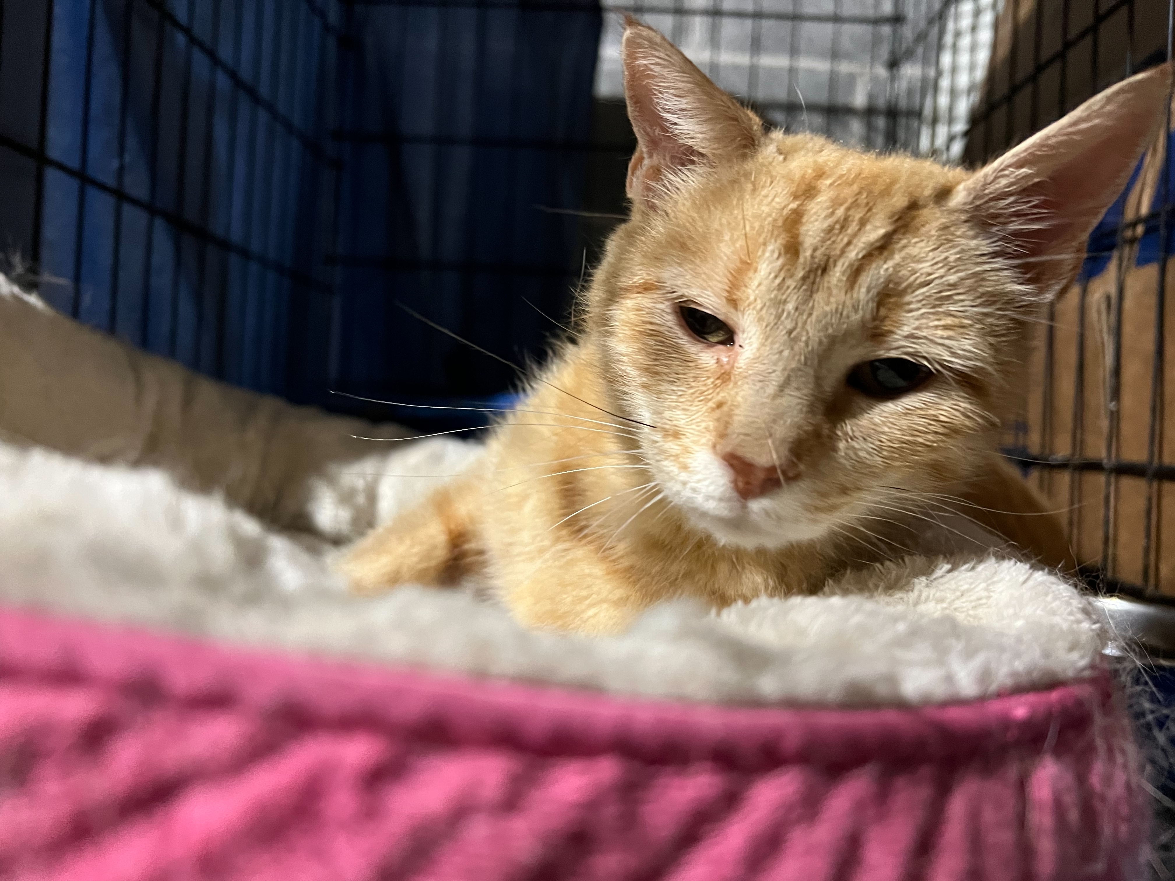 My name is Cindy. I am a 2 year old orange tabby female cat. I was rescued as a stray in a development with my 3 kittens. I am a sweet girl. I am an independent girl. I love to be in same room as you and lay close. I am just a bit feisty sometimes so no children please. A cat savvy owner would be perfect for me. I need to be an only pet since I love to play queen of the house. I like to be petted a bit and get attention and then sometimes I like time to myself to just stretch out and relax. Please adopt me.