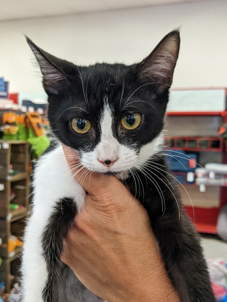 DOB 4/15/22 Piper - a beautiful kitty with beautiful markings. She loves to play with straws and enjoys boxes or tunnels to play in. She can be shy at first but once she knows she is safe she is a big cuddle bug. For inquiries, please email DallasCatLadyInfo@gmail.com. You must be over 25 years old to adopt with proof of ID. Adoption fee is $100. for kittens, $85. For teenagers (9-11 months) and $65. for adults (1 year & older) which helps cover all the vetting done to date.
