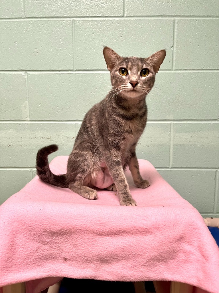 Hi there, nice to meet you, Im Pearl. Im a beautiful marbled-gray adolescent girl who is chock full of mischief and fun. I love to explore and play play play, and I would love to have a home to call my own where I could explore and play to my hearts content. I am very hard to resist once you meet me! Love, Pearl..
