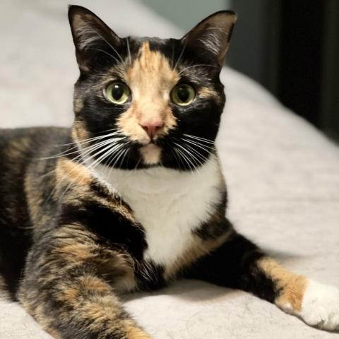Well, hello there! Im Silk and like my namesake suggests, I have the silkiest of purrs. How will you know? Because, I purr constantly! I purr when you pet me, when you rub my belly, when you talk to me....even when you just look at me. I was adopted as a kitten 2 years ago, and by no fault of my own, I had to come back to SFC because my human got very sick. Ive been living a great life since kittenhood, so rest assured that Im a very comfortable house cat. Im a good mix of playful, social, and lazy. Im currently staying with my foster family and have one feline sister. We are fine together. We havent been together long enough to become good friends, but were respectful of each others space and only hiss or growl at one another on occasion. I dont live in the same space as my foster dog siblings, and that is just fine by me. Theyve come to visit me and also like to stare me down through the French doors. Theyre just not my cup of tea. My foster mom thinks I probably did not live with dogs in my former house and would be happier without them in my forever home. Im a very good and happy girl and hope you like what you see. Lets meet soon.