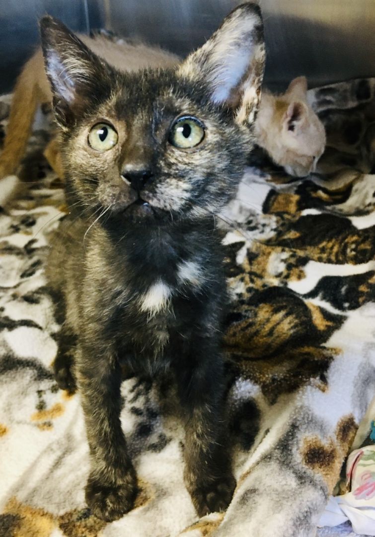 Lola, born approximately 7/1/2022, is a seriously adorable, petite, Tortie girl with zero percent Tortitude and 100% affection. Lola loves to cuddle and use her paws to touch her humans, purring nonstop, and swishing her cute little tail all around you. She also has lots of silly kitten energy and loves to bounce around, chase her bestie brother, Bugs, and attack her mousey toys. She would love to be adopted with her best bro, Bugs. Adopting from Sheets Pet Clinic cat adoptions is simple! Request an application, answer a few follow-up questions, then when your application is approved, we set up a meet-greet. The application helps us guide you to your best match. If we don’t have your best match, we can refer you to other great rescue groups. Write petadoptions@sheetspetclinic.com for application. Or you can find a printable application on our website under the Adoptions tab.www.sheetspetclinic.com Our adoption fee is $100 for each cat 6 months and older, $150 if you adopt two 6+ month-old cats at the same time. $125 for each kitten, $200 for two kittens adopted at the same time. That fee includes spay or neuter, microchipping (we register the chip for you), testing for FeLV (Feline Leukemia) and/or FIV (Feline Immunodeficiency Virus), current, age-appropriate vaccinations, FeLV vaccinations for kittens, flea treatment and deworming. All adoptees receive an “exit exam” from one of our veterinarians before going home. BONUS! Adopt a Sheets Pet Clinic cat or kitten and receive half-price vaccines for the life of your pet! More details on adoption. NO RISK! Adoption fee is refundable for two weeks to make sure youve found a match for your household. Even after two-week period, well take the adopted cat back for any reason Adoption Fairs held at the clinic on the 2nd and 4th Saturday of each month, unless the Saturday falls on an observed holiday. Applications still required to be approved before adoption, but the fairs are open to the public and are typically between 1-3pm. Watch for announcements on our Facebook page! **The Sheets Pet Clinic cat adoption program is funded entirely by the clinic. Every staff member is part of the rescue team. Staff members devote countless off-the-clock hours to the cats in our care. Sheets Pet Clinic is a full-service veterinary hospital plus a low-cost spay/neuter clinic. Everyone qualifies for our low-cost spay/neuter program, regardless of income. We also have a feral cat assistance program, rent out humane traps, and give deeper discounts to numerous local rescue nonprofits to aid them in their fight to end cat/dog overpopulation and homelessness. **http://sheetspetclinic.com/