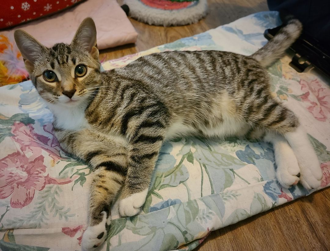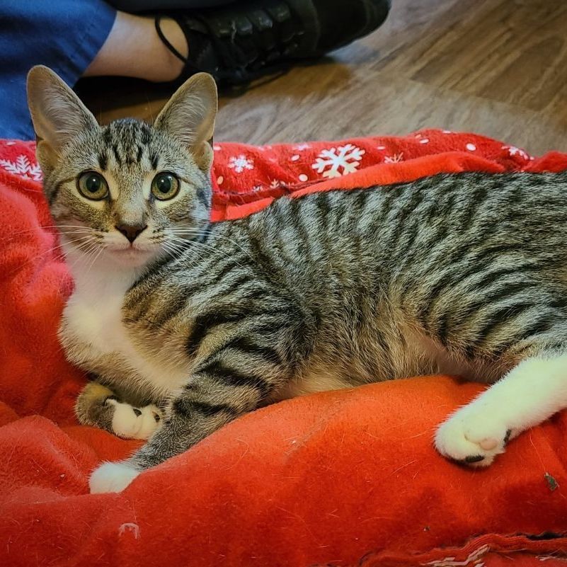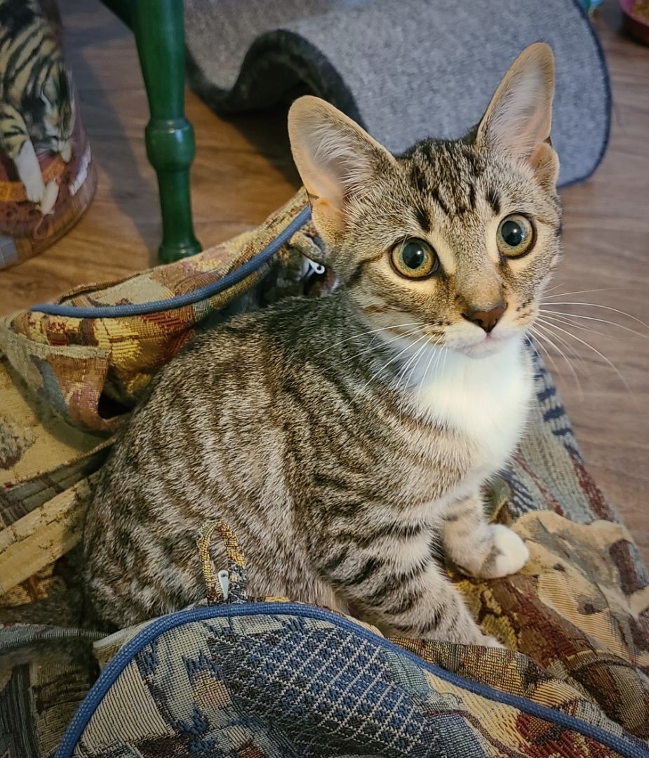 Meet the Wine litter! This group of six siblings came to us because their (unfortunately unspayed) mother had escaped her home, was on the run for a while, and then came back with a surprise which her owners were quite unprepared to deal with. These kittens are now about 13 weeks old and some of them are still a little skittish, but they are coming around quickly and becoming curious and playful. Pinot is the smallest kitten of the litter and one of the most outgoing. She is friendly and has the cutest little personality. She would do well in a home with other cats, cat friendly dogs and respectful children. Since we believe that kittens that young should not grow up as the only pet in a home, Pinot will have to be adopted as a pair with another kitten unless there is already another cat or a cat friendly dog in the home. Pinot has her initial vaccinations but will have to be returned to New Hope for her boosters, microchip and spay when she is old enough. The cost of this is included in the adoption fee of $200. Contact us at 519-836-9780 (Monday-Friday 8am-4pm only) or by email at newhopeanimalrescueguelph@hotmail.com if you are ready to add a kitten or two to your household!