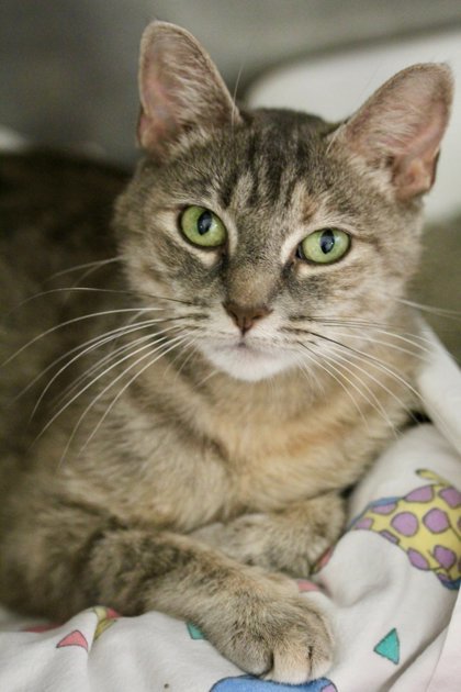 Its always difficult to be outside trying to make it on your own, but its even more of a challenge when youre pregnant! That was my situation until a nice lady took me in until space opened up at the Shelter. Honey Bun is my name and Im a sweet as can be, 3 year old grey tabby female. I gave birth to 6 kittens and was a very good Mom! Heather, Hannah, Hunter, Herbie, Harry and Henry are on their own now so Im patiently waiting to find a place of my own. The person who found me said I really like catnip toys and am an outgoing and friendly gal who uses my scratching post.