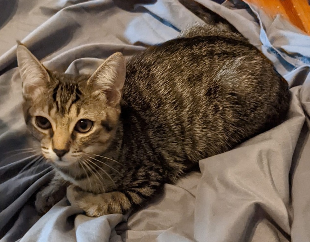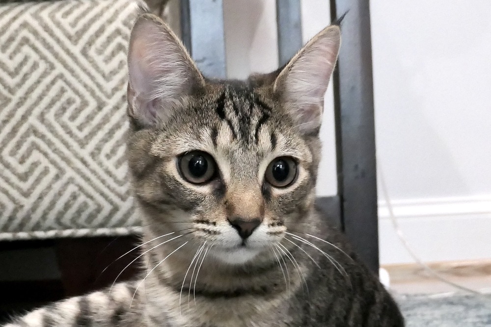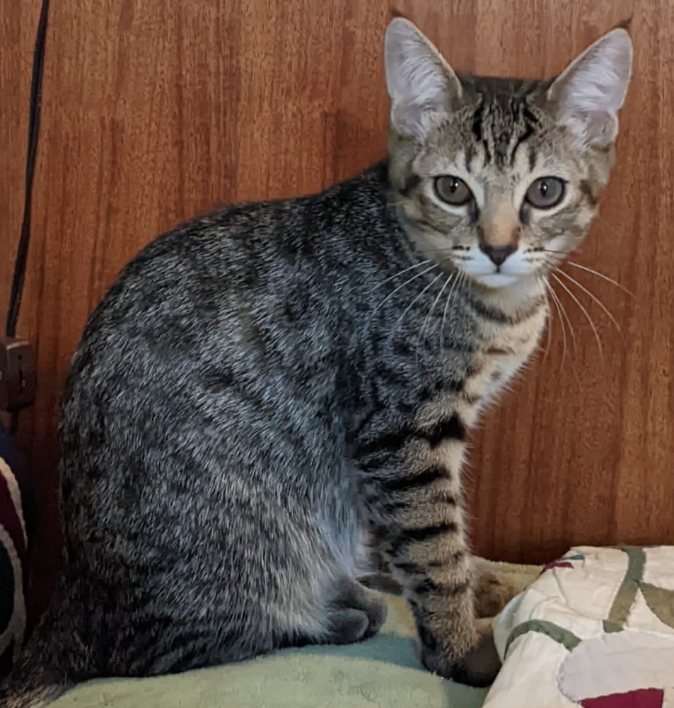 Our wonderful foster mom helped momcat Melon raise five kittens from birth! She has this to say... Raisin is part of our fruit salad of kittens... a sweet, gentle baby. She is large among her siblings, yet gentle and cuddly. Raisin likes to play with me in a gentle manner. Her claws are not out and she likes to just be close. She is also a great lap kitten, likes to be with people, is soft and sleek to pet. At first, Raisin was our goofy kitten... she crawled into odd places, scrambled to the wrong side of momma to nurse, and generally made us laugh. She has gotten wiser as she has grown - but shes still entertaining. Meet Raisin! All adoptions require an online application at http://care-cats.org first.