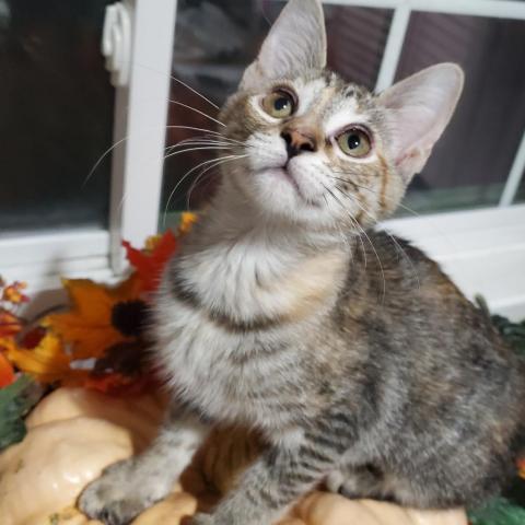 Its nice to meet you, my name is FeeBee. I am fun and playful little girl with tons of love to give. A foster from Houston Pets Alive! took my pregnant mom into her home for our health and safety. On June 7th, me and my siblings were born. I love playing with my siblings and our foster 5 older kittys. We even share the water fountain and toys. I have 3 brothers and one sister, please let me stay with one of them. My foster mom says that I will always be with another kitty and never lonely. I have the most beautiful tummy and love it to be tickled. There is a strip around my neck that appears to be a necklace. I love to lay next to you and sleep. I always finish my dinner of wet food with dry mixed in. I am very ladylike using my litter box. I am obsessed with any toys that squeaks and love the cat tree to climb. I sit in the window to watch the rain and birds playing. I know I will always be safe inside. Please let me show you just how I can love you, and i promise you can tickle my tummy.
