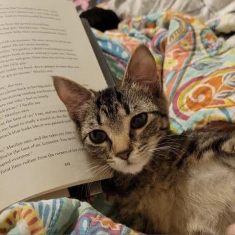 Meet Nellie. Shes kind of a small fry for her age. She must have been the runt of the litter and thats why she got left behind. Her eyes of helplessness all but disappear when shes got a feather toy to kill! She enjoys playing and is a professional wiggle-butt. Nellie is ready for adoption, but must go to a home with other kitties around to teach her that humans are not scary. She is quite fond of any of the other kittens that come into her foster home and welcomes them warmly. She is very timid and if you do get to hold her, she will purr and relax, but the initial approach terrifies her. That will change as she grows and become more socialized though! All of our rescues are felv/fiv tested, up to date on vaccines, spayed/neutered, and microchipped! Our adoption fee is $95 no matter age or breed. Follow @Cattyshackhsv on social media to see photos of our babies while they play at Alabamas only nonprofit cat lounge Thursday-Saturday! www.cattyshackhuntsville.org (reservations required!). #rescueloungeadopt