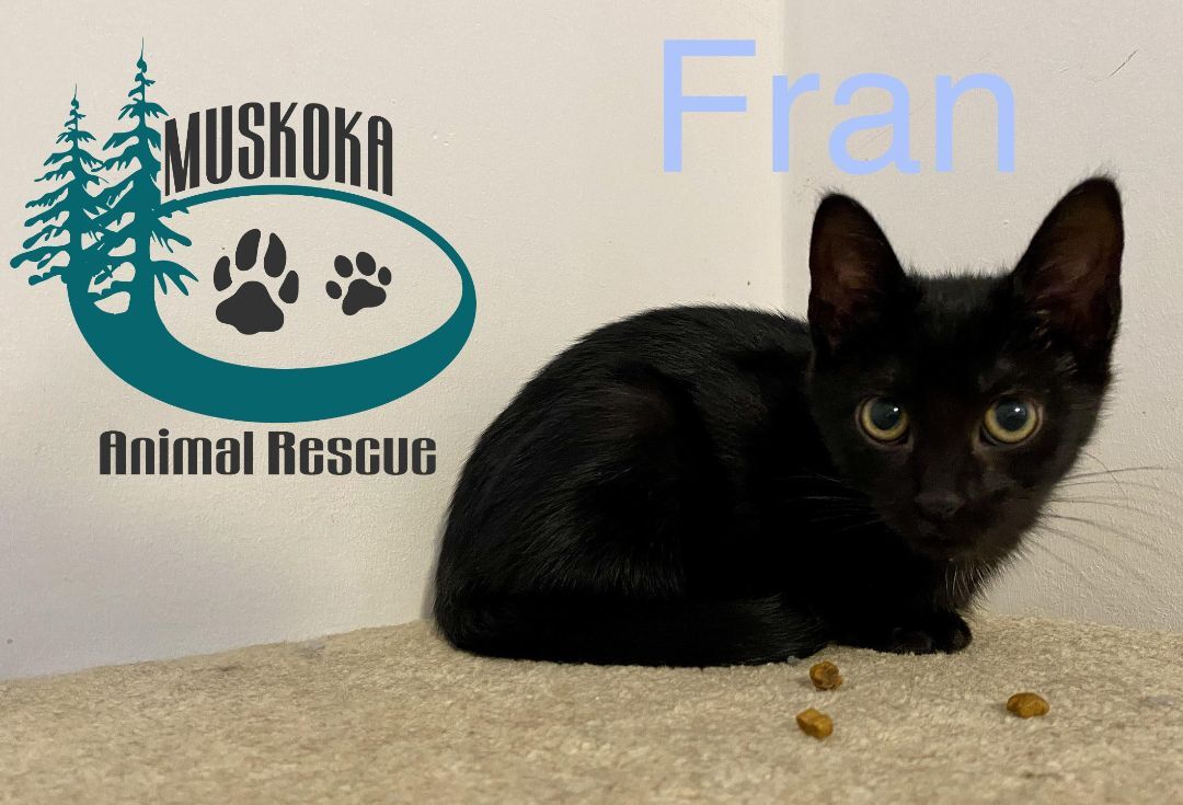 Meet the ‘Five F’ Litter! These kitties were rescued from a hard life outside and are now ready for their furever families! They were born approximately May 13th, 2022 and are 12 weeks old at the time of this posting. These kittens are vaccinated, microchipped and will be spay/neutered when old enough. The ‘Five F’ Litter are part of MARs Foster-to-Adopt program. This is Fran! Fran is a shy black kitten who loves spending time with her foster siblings. Fran can be timid around people, but is learning trust through her foster mom & siblings. Although Fran doesn’t like being picked up just yet, she does enjoy pets from her foster momma and is slowly getting the courage to be herself around people. Fran has a big purr once she’s comfortable and has a very kind disposition. Fran will need a human who will be patient with her and show her all the loving she needs to make a great indoor kitty. Fran would do best being adopted with one of her siblings (Fiona & Frank) or foster sibling (Molly). If you would like to foster-to-adopt Frank, please visit our website at www.muskokaanimalrescue.com and complete an application! THANK YOU FOR YOUR SUPPORT! YOUR SUPPORT SAVES LIVES! Adoption fee: $250 Kitten Duo: $450 *All adoptions include spay/ neuter, full vaccinations, rabies shot and a microchip.*