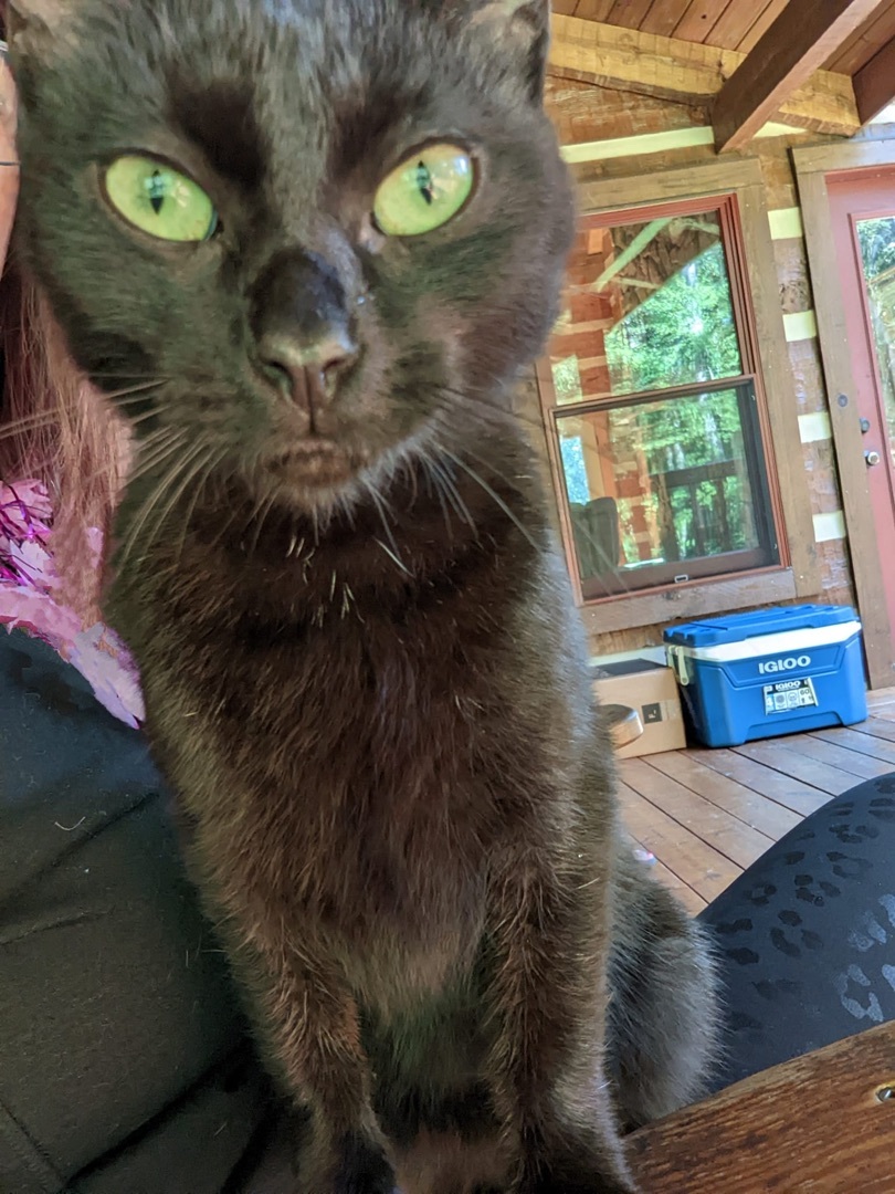 Never a day off for our volunteers! This is Miss Keisha. We found her hanging around the cabin and woods in Hocking Hills while we were there for a bachelorette party, the owners of the house didnt know anything about an owner or Miss Keisha, so we packed her up and brought her home with us! We’ve had her completely vetted and she’s now ready for a new home! Miss Keisha is Approximately 2 years old. She is very very friendly, likes to play, likes to be pet, likes laying on laps, likes to talk, wants all the attention. Fine with dogs, OK with some kitties, unknown if shes good with kids but per the notebook in the cabin the kids from the family that last stayed had been interacting with her (and named her Miss Keisha). http://luckypawsrescue.org/foster-adopt/