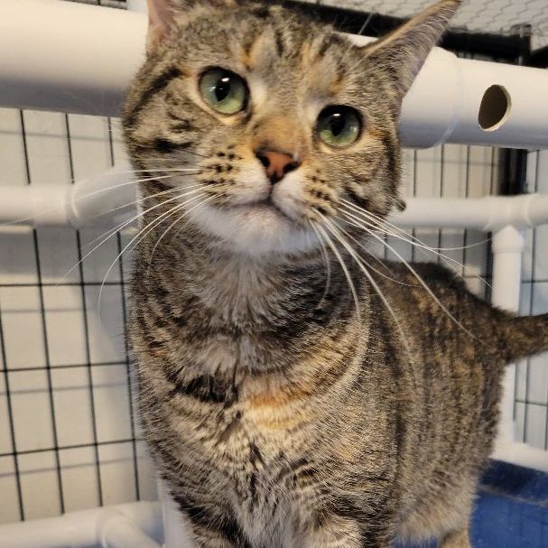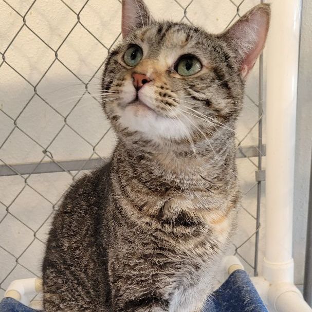 Jill wants what every cat wants: a safe, comfortable home where she can be loved. She is a sweetheart who gets along well with other cats, especially her brother Jack. She also loves to climb into your lap! Jill is about 1.5 years old and is vaccinated, spayed, and microchipped. Come see this beauty today!