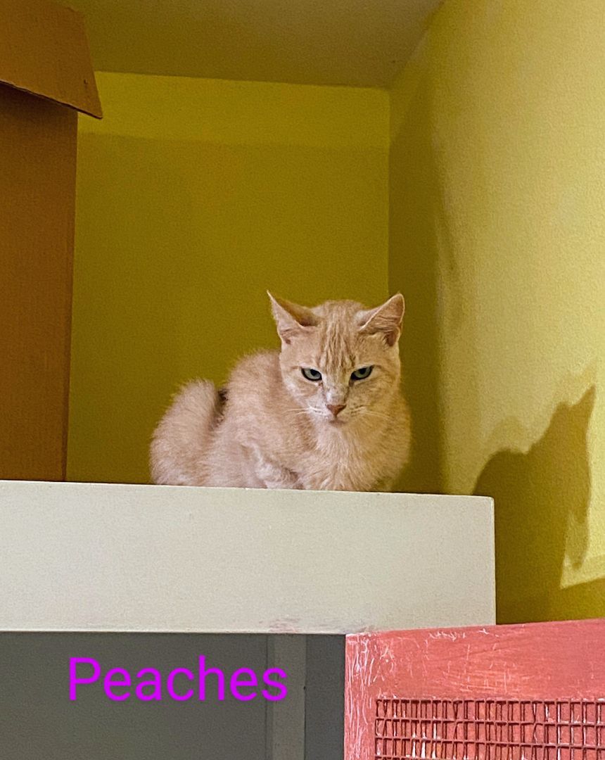 Hi this is Peaches. I am the only orange kitty at the moment here at our rescue. So I do consider myself sort of special. I am looking for the best home ever I dont mind sharing with other kitties I might even like dogs. But I do like being spoiled and I need my slaves uh uh I mean people to do that.