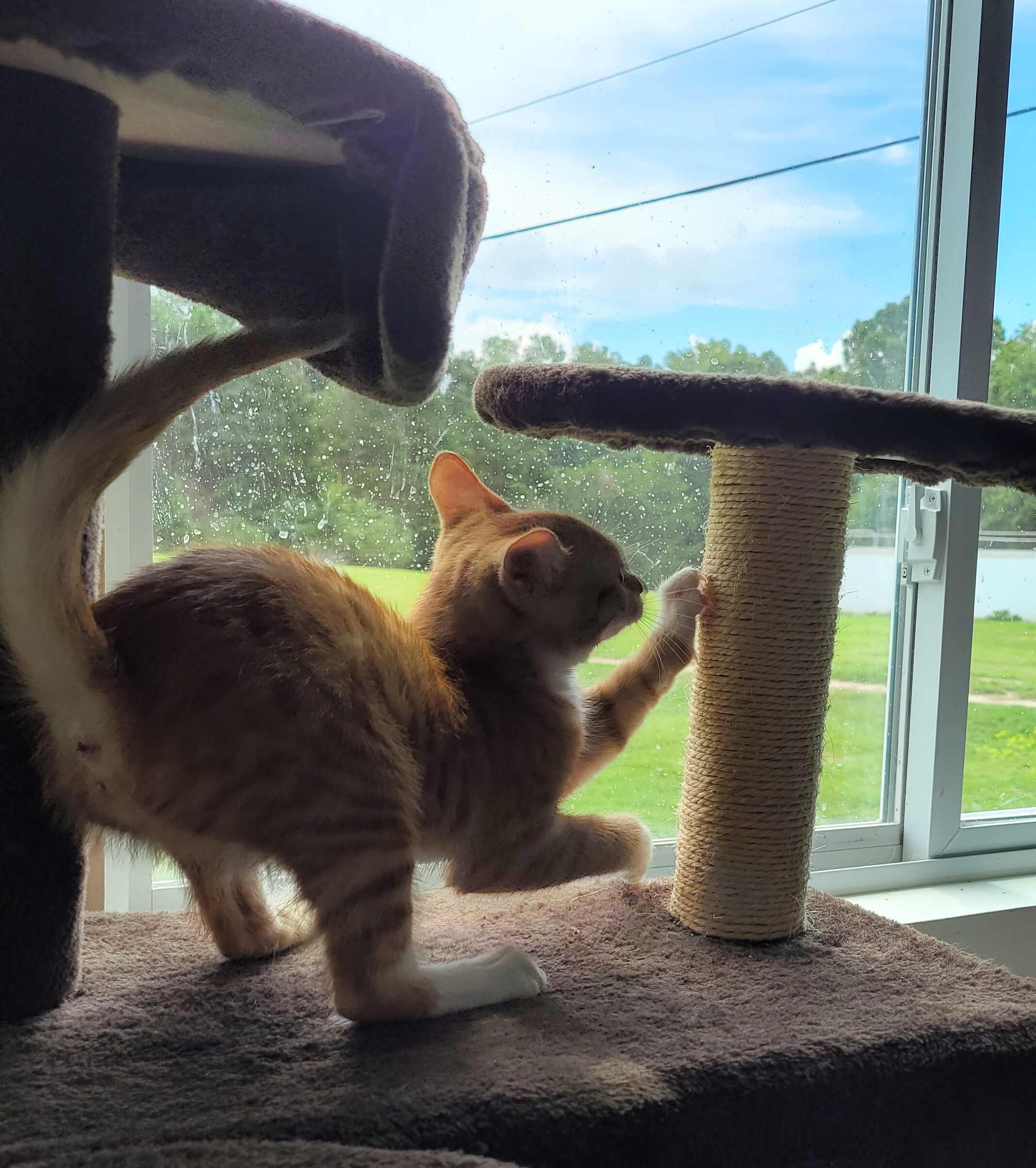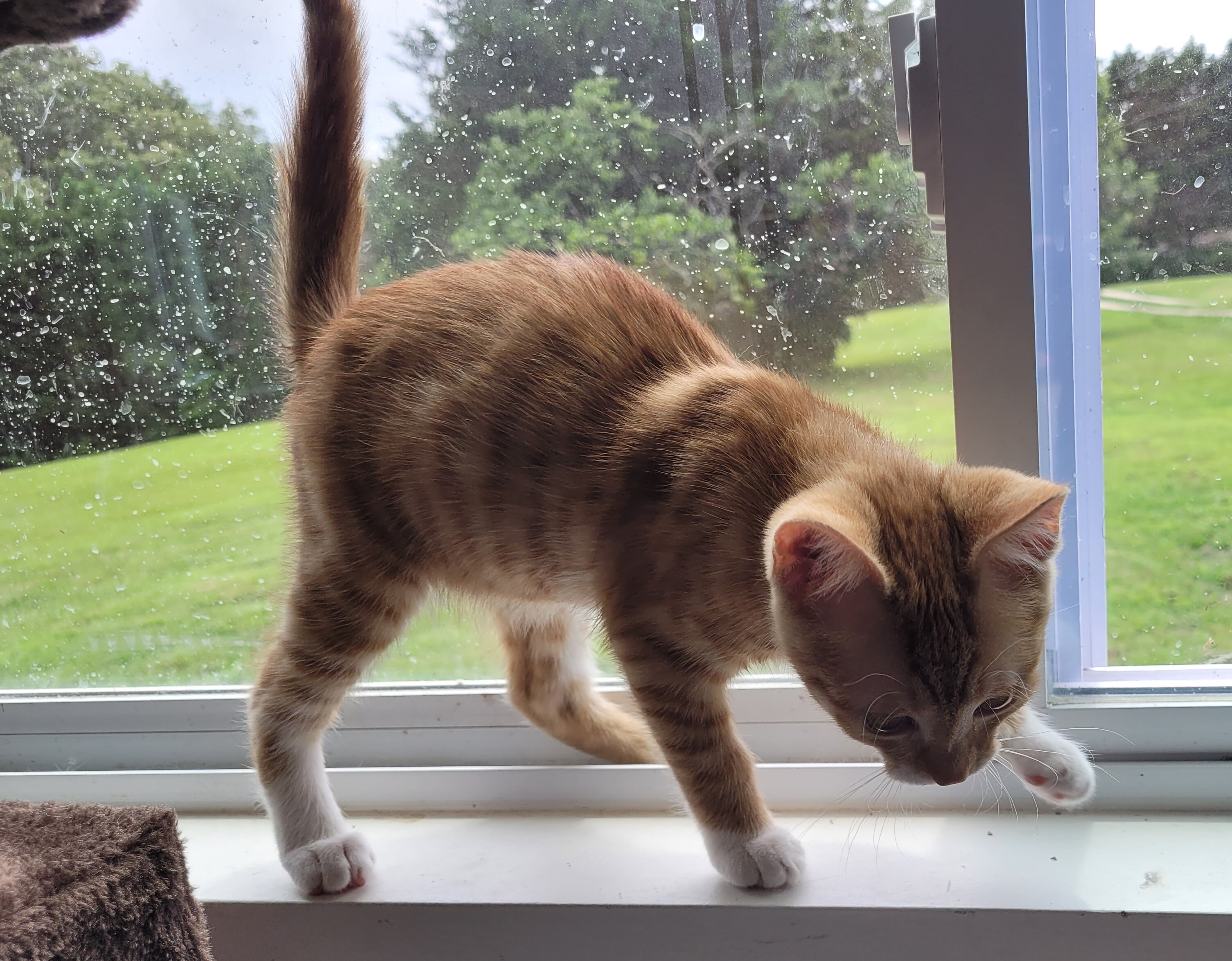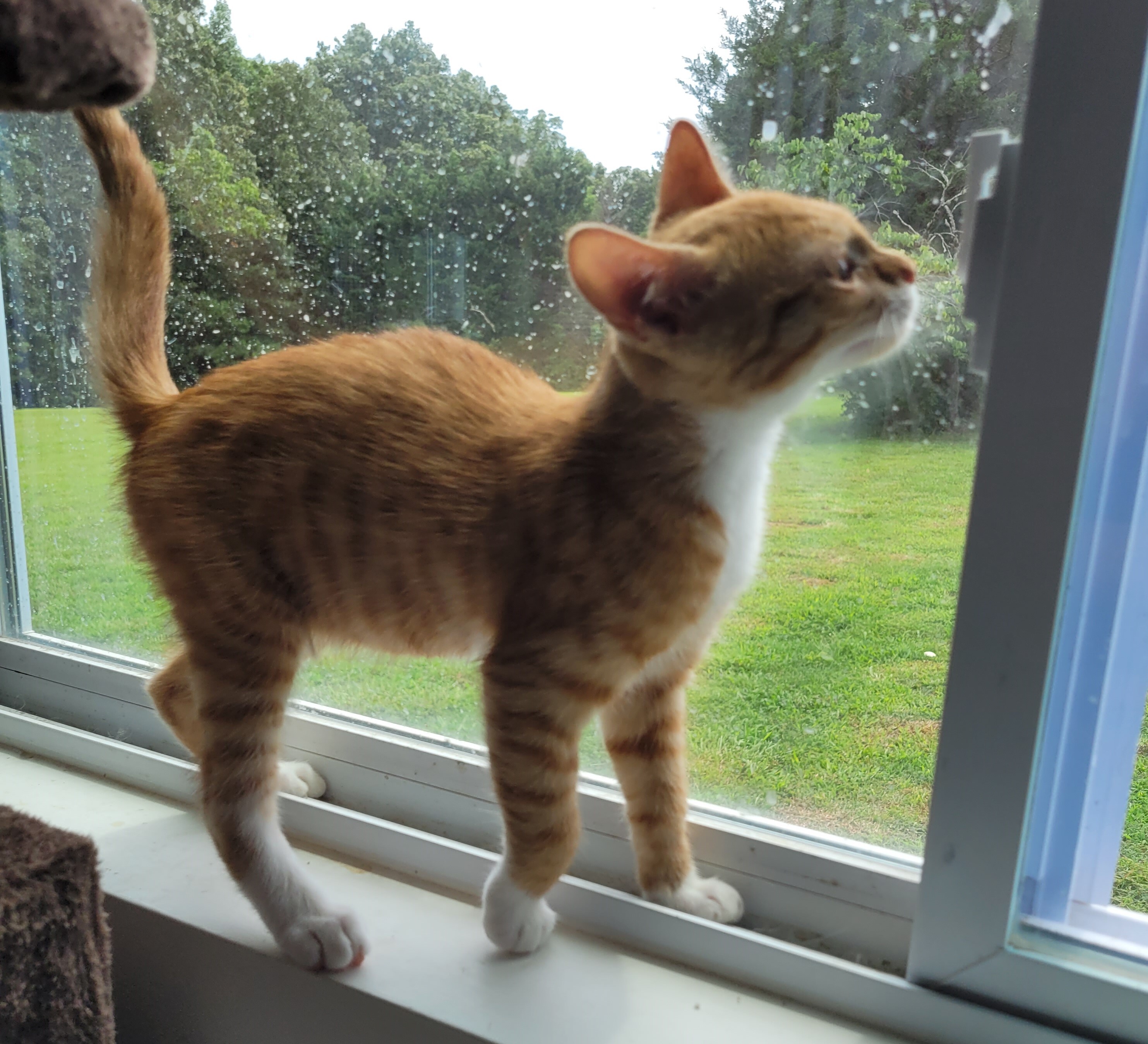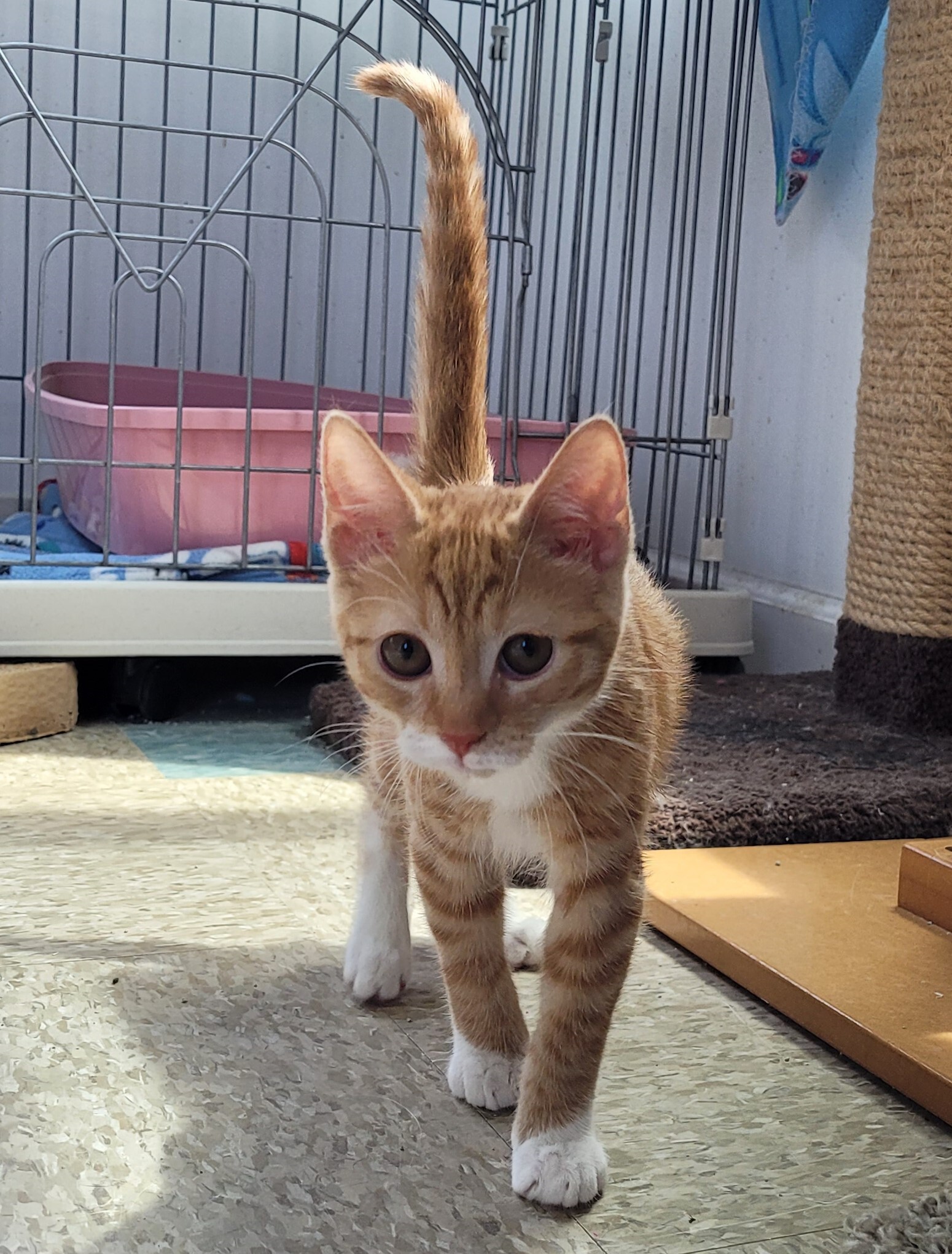 Tigger takes after her name sake, she is a ball of energy and super fun to watch. She loves climbing, jumping, chasing, playing, exploring or any other type of activity! She is a true kitten. She currently isn’t spayed, but we are working on getting that taken care of. She was found in a field and brought in to us to help get her the home she deserves.