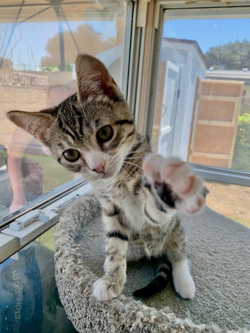 DOB 3/23/22 This unique girl is sweeter than sugar and an instigator of fun all at the same time. Bubbles loves to sneak attack and cry wolf (loudly...loll) with her playmates. She will fall asleep in your arms or on your lap. As soon as you sit down Bubbles will be right beside you. Bubbles likes to be part of the action but on her own terms. She loves to cuddle and loves attention. Bubbles is deaf and has a quirky little walk and head bobble left over from her early days. Bubbles has a uniqueness about her and she is adored by all who have come to meet her. She loves human attention and is a very special soul who is like no other. You cant help but fall under her spell when you meet her, shes simply magical! Bubbles started her journey with HOBC when she was discovered inside and old mattress with her brother. Bubbles was caught in the coils and was screaming for help. At some point in her life, likely during the birth process Bubbles developted neurological symptoms, a prominent head tilt, hearing and vision loss. This precious sweet girl has made some tremendous improvement. Her vision restored, head tilt greatly improved and her head bobble much less but as cute as can be. Bubbles remains completely deaf and can sleep like no other! Please contact House of Broken Cookies (houseofbrokencookies@gmail.com) for more information about this pet. Prior to adoption, all cats have the following services: *Spay or Neuter *3 in 1 Vaccination *De-wormed *Treated for fleas *Tested for FIV/FELV *Micro-Chipped