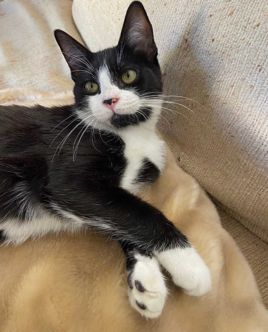 DOB: 5/9/22 Liz is a bold and brave kitten, always the first to go exploring and even tolerates being close to the vacuum! She is very vocal with sweet meows to let you know where is she is and that she would like to be held for snuggles and a better view for exploration. She purrs easily and will seek out a spot on your lap after her epic adventures. She has a very unique coat with big black spots on her nose, belly, and chest. See more on the Starlet litter Instagram https://www.instagram.com/kittensfosteringinsta/ If you are interested in learning more about this kitty or in adopting her, please click here to email her foster parent.If you are unable to send an email to the foster parent through the link included above, please contact us and let us know what kitty youre interested in. You may also fill out our adoption questionnaire to speed up the screening process. Be sure to name the cat in the CAT PREFERENCE field at the beginning of the questionnaire. If the above links arent live, our contact form and questionnaire are available on our website at www.kittenrescue.org.For our fees and adoption policies and procedures, please click here.