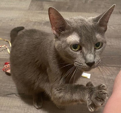 Meet Beet! Beet and her kitten, Apple, came in through our cruelty department with many other cats when their owners could no longer care for them. Beet is friendly, sweet, and vocal!! She is a little timid around dogs but otherwise a friendly gal! Stop by and meet her today!! Beet was exposed to cats in her previous home positive for Feline Immunodeficiency Virus (FIV) and Feline Leukemia Virus (FeLV). She has tested negative twice, forty five days apart, but it is recommended that she be retested at 2-6 months or at the recommendation of your primary veterinarian. (For more information on FIV and FeLV, please visit https://resources.bestfriends.org/article/feline-leukemia-felv-faqs and/or https://resources.bestfriends.org/article/fiv-cats-faqs-feline-immunodeficiency-virus.)