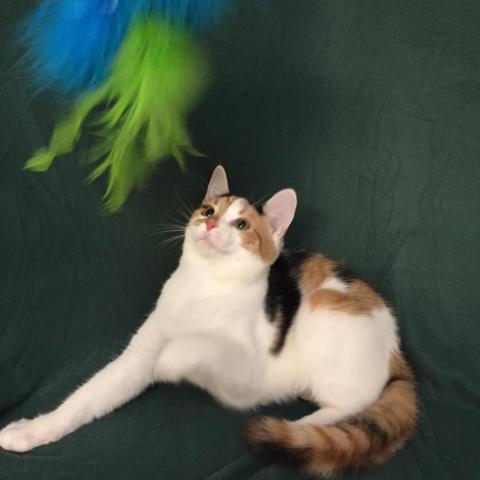 Solara and Malibu are loving siblings rescued from West Virginia. They would love to be adopted together! They are very active, energetic and playful, often getting the "zoomies" and racing around the house. In their foster home they have been eating Fancy Feast Grilled and Gravy Lovers varieties canned twice daily, and have very healthy appetites for that type of wet food. They do not care too much for the pate varieties. They also have free access to Purina Pro Plan Complete Essentials Chicken and Egg kibble. They have good litter box manners and are accustomed to unscented litter. A wide variety of toys to bat around, and an upright scratching post wrapped in sisal rope, are a must. They enjoy climbing up and down carpeted kitty towers. They also love interactive play with their humans using the long plastic wand with feathers on the end, and love to play with other cats. Malibu is the braver of the two, while his sister is more cautious when it comes to being introduced to new surroundings. Malibu is also more outgoing and accepting of being picked up, while Solara tends to be affectionate on her own terms, though over time she has more frequently approached her foster mom for pets and has become a "half -lap" cat. She wants to sit right next to her foster mom and drape her front paws over one leg, or "half" the lap. They are not suited for a house with small children as commotion and loud noises easily startle and upset them. Their estimated birthdate is 9/1/2021. They are current on vaccinations, tested negative for FIV and FeLV, have been micro chipped, and have been neutered/spayed. ************** Please note: 4Paws will only consider local adoptions (Northern VA / DC / MD metropolitan area) 4Paws does not adopt to students All kittens under 6mos of age must be adopted into a home that already has another young cat/kitten; otherwise, must be adopted in pairs with a littermate.