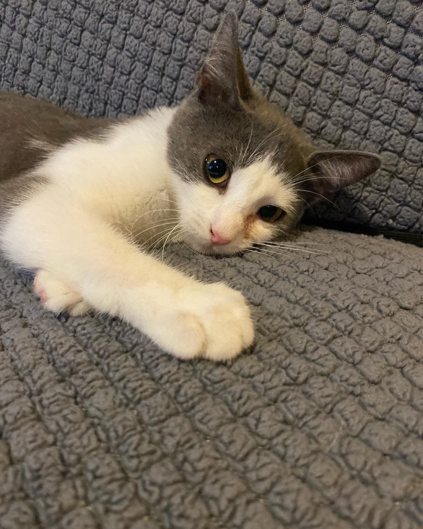 Willow is part of a yard rescue consisting of 5 beautifully different looking kittens. Unfortunately for Willow she was rescued 2 mos. after her siblings, so she spent her time out in the streets and left to the elements. When finally rescued her sisters had already been adopted so she hadnt been reunited with them, but she had her brothers to welcome her into what living in a home was going to be like. She adjusted quickly, happily and playfully.. And, despite her stunted stature (more than likely the runt of the litter) She is able to stand her ground during playtime.. She tends to attack her brother Julian surprising him with her sass and spunk. This little girl is not only a purr machine, but she loves attention and affection. Kind of not a fan of being picked up, as being picked up is usually followed with eye cleaning (she has a bit of eye gook - though her eyes are clear and bright). Willow loves motorized toys, cat climbers, ball toys and boiled chicken.. She is a great eater and tends to go into the litter box whenever her foster cat siblings dont burry their mess, she will bury it for them.. LOL.. she has amazing litter box manors. Needs to go to a home with a young Kitten/Cat friend.. She doesnt realize her small stature or maybe she does and makes up for it with playtime. Shes a lot of fun and keeps a smile on her foster familys faces..