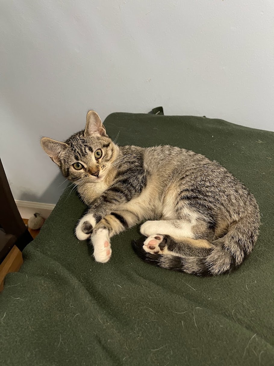 Popcorn is our little adorable deep thinking kitten. She likes to observe everyone for a bit before joining in all the fun. But don’t let that make you think she does not like to cuddle, play chase or scope out the newest amazon box to arrive. Popcorn is litter box trained and excited to find her forever home. Popcorn can be seen at Petco in Blaine If you are interested in meeting Popcorn, please go to our website and fill out a cat application. https://www.therescuepack.org/cat-adoption-application