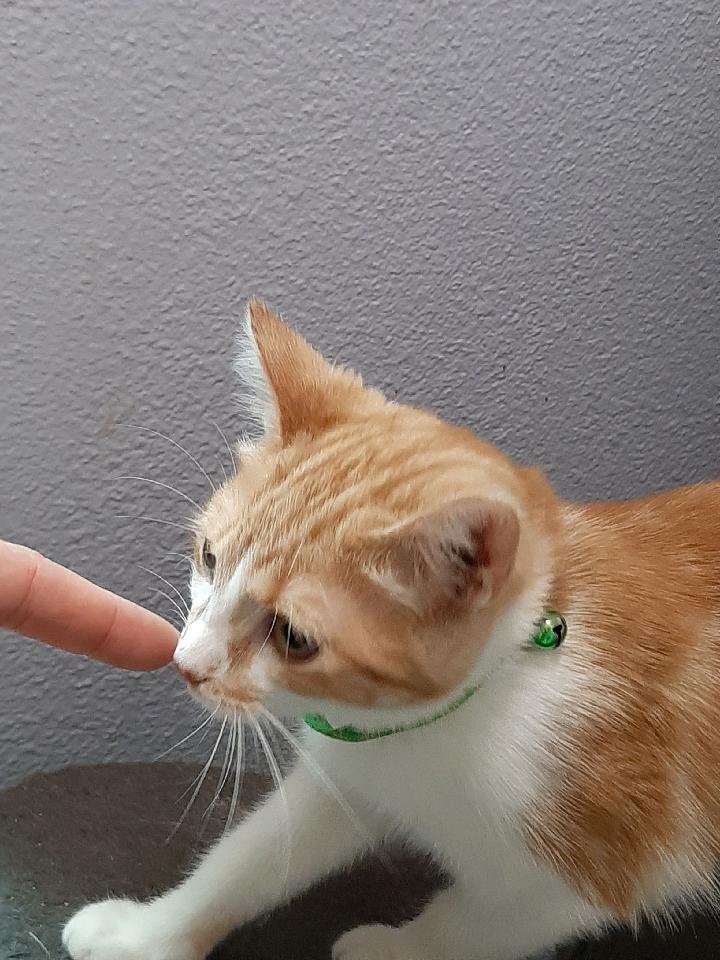 OK (Orange kitty) is about 3 months old as of September 2022. She is super sweet and purrs if you are in the same room as her. She loves pets and cuddles and is very playful and affectionate. She gets along well with kids, dogs and other cats. Currently in a foster home, you can set up a day to come meet this kitty (on Saturdays during adoption event hours). Please give us at least a weeks notice via wtfcatapps@gmail.com or text (707) 258-2287 for more information. Thank you! Cats/kittens come spayed/neutered, microchipped and vaccinated with an adoption fee/donation to Whiskers, Tails and Ferals in Napa, CA. See more information or download an application at http://whiskerstailsandferals.org/. -- Cat adoptions inside Napa Petco every Saturday - 1pm to 4:00pm -- Visit our Facebook page: https://www.facebook.com/whiskerstailsandferals/ Follow us on Instagram @Whiskerstailsandferals