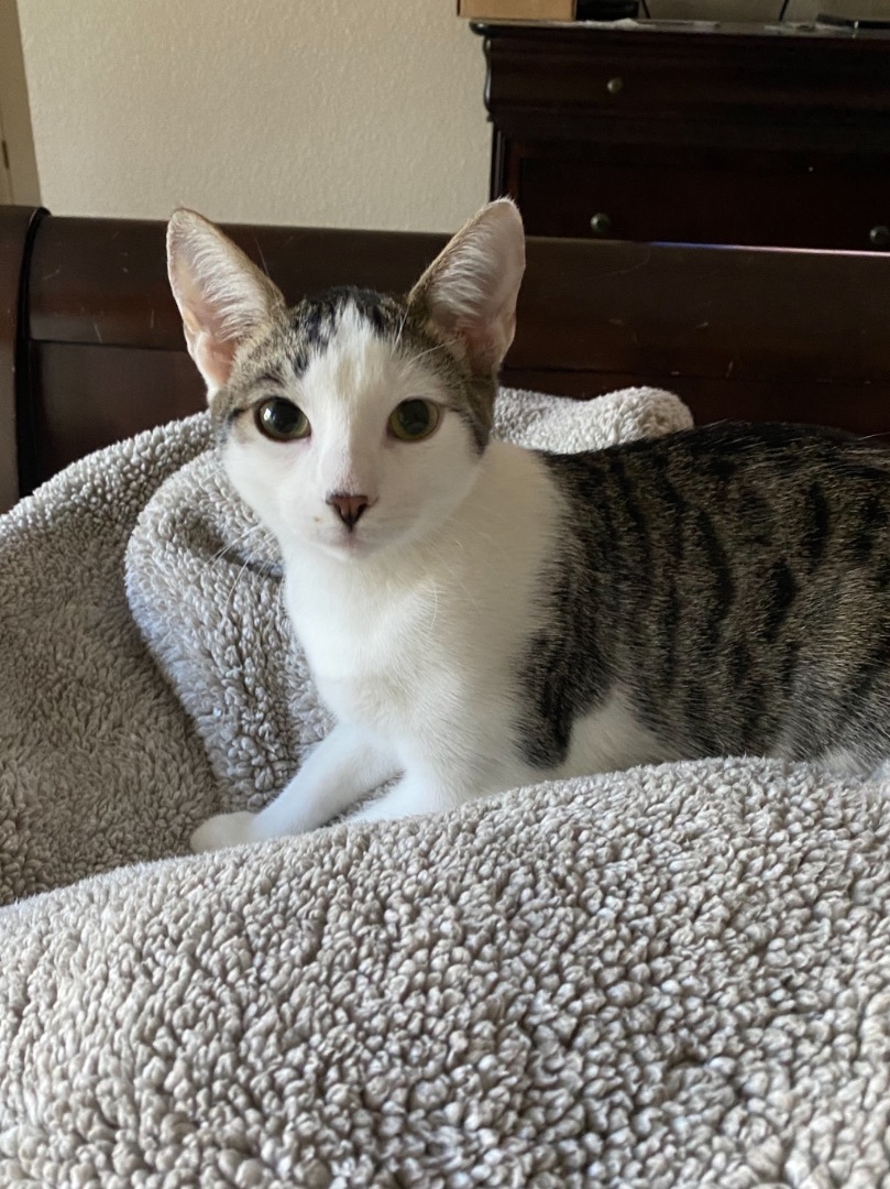 **Courtesy Post** Please note: This pet is NOT at the Oakdale Animal Shelter. If interested in meeting Lovely, please call 209-581-4456. Please come meet apx. 4 month old siblings named Lovely, a female and August (Auggie) a male, black and white domestic short hair kittens. This sister and brother duo are so sweet, gentle and love to play and snuggle.\xa0\xa0They are bonded siblings that would like to be adopted together.\xa0\xa0When little Lovely had a really hard start, Auggie was right by her side to protect her and he still stays close.\xa0 These are the quietest most gentle kitties needing a safe, loving and Inside Only home.\xa0\xa0Both are spay/neutered , leukemia negative, kitten vax and chipped. To meet these darling siblings, please call 209-581-4456 for more information or to schedule an appointment to meet them.