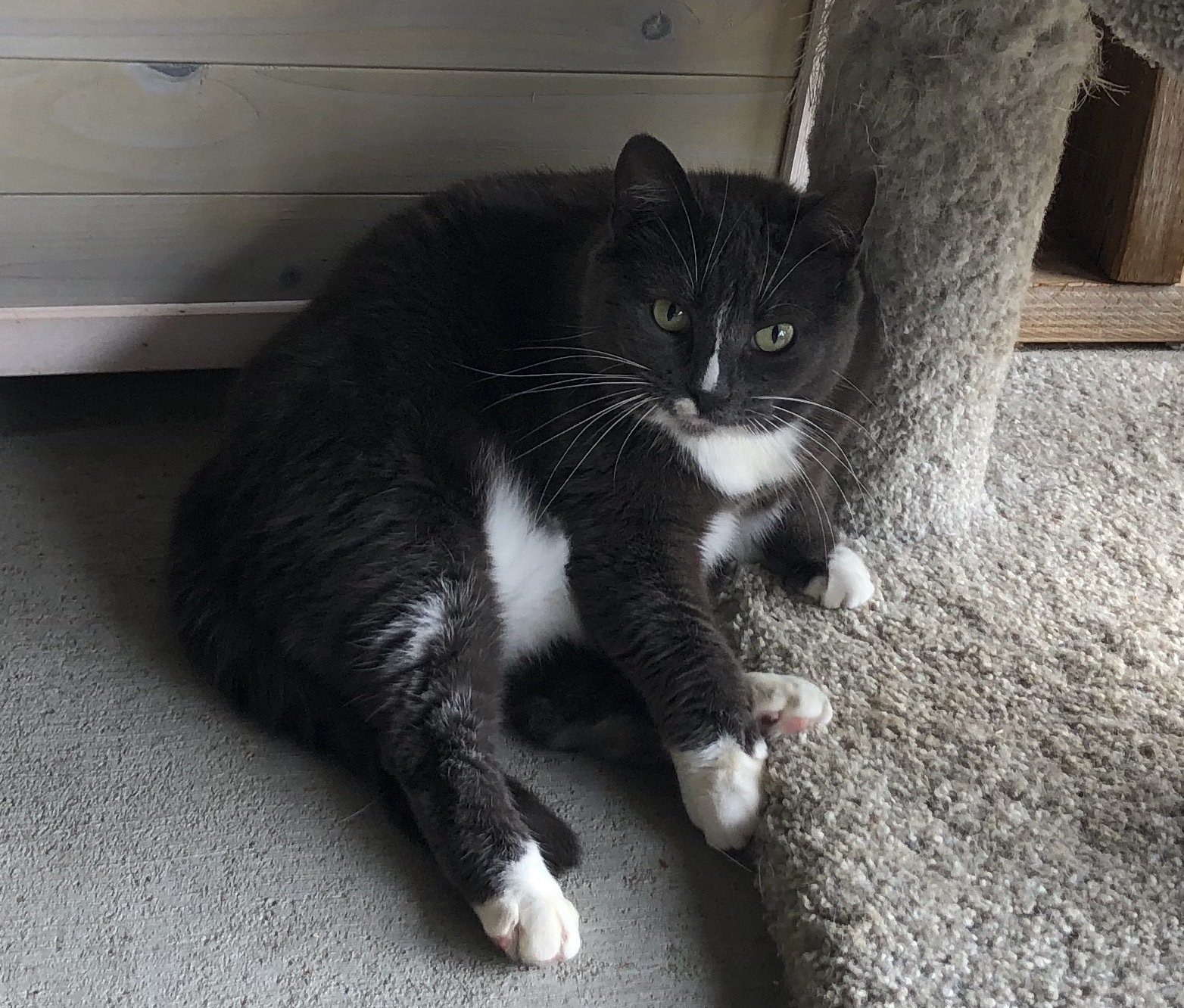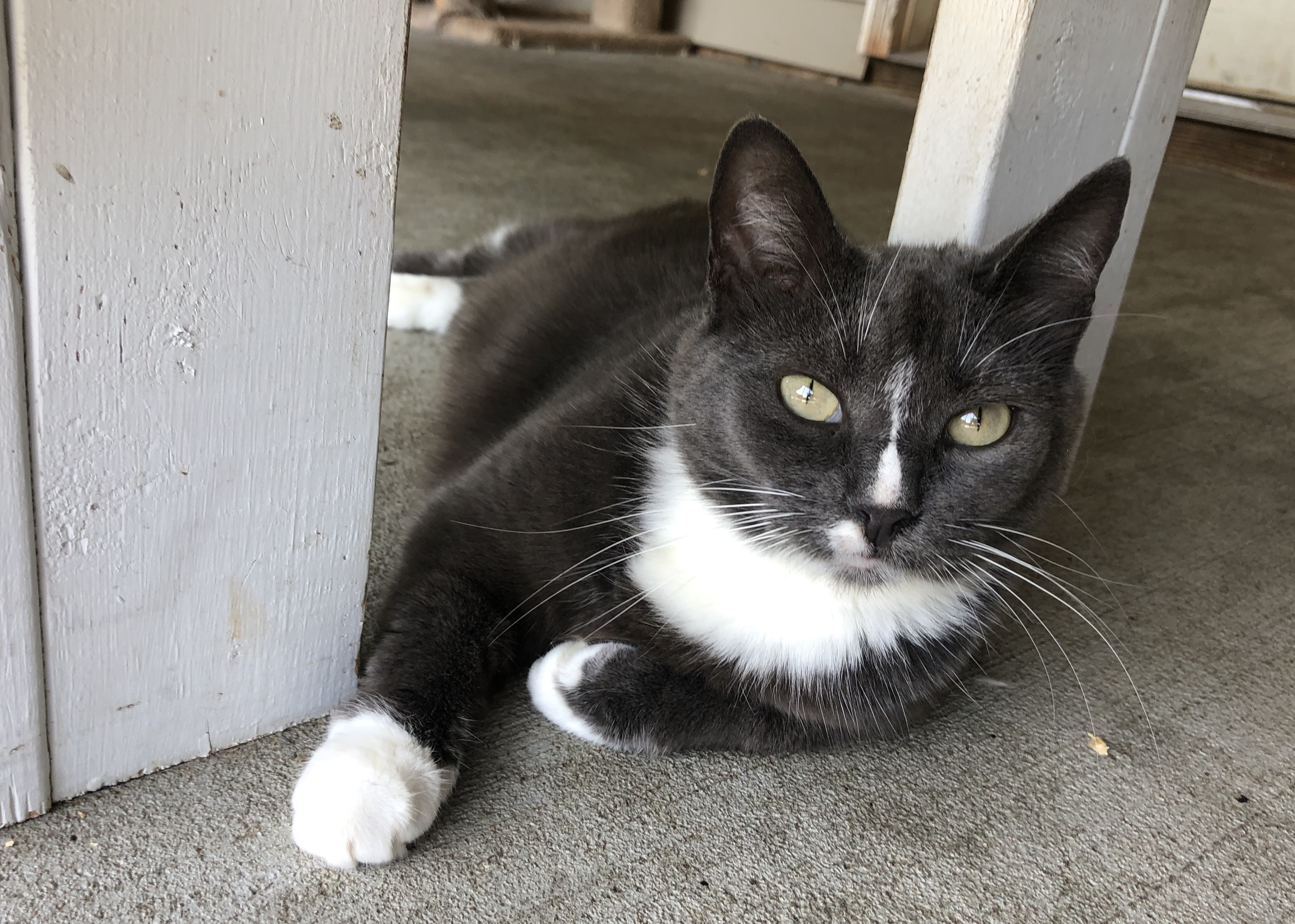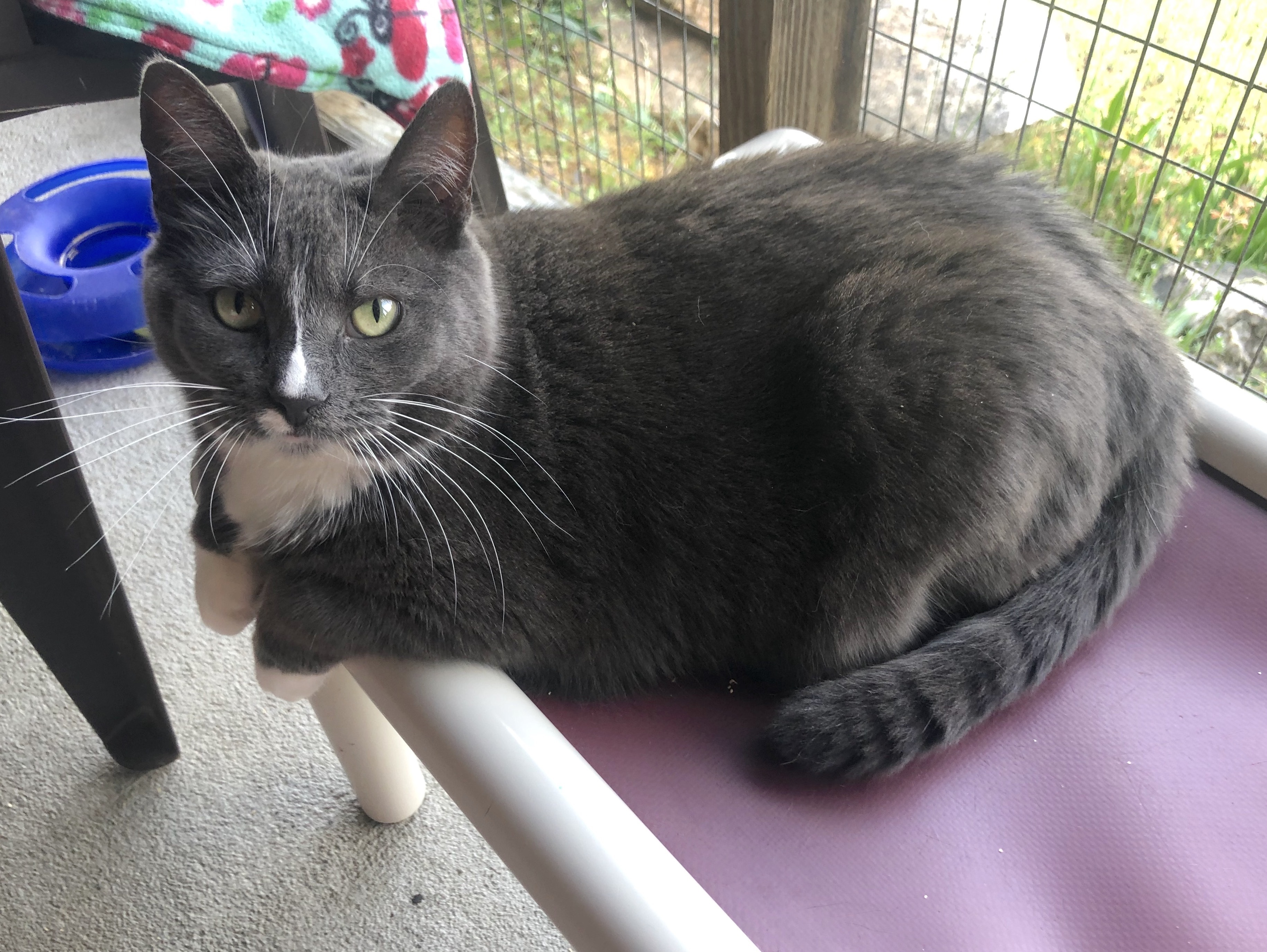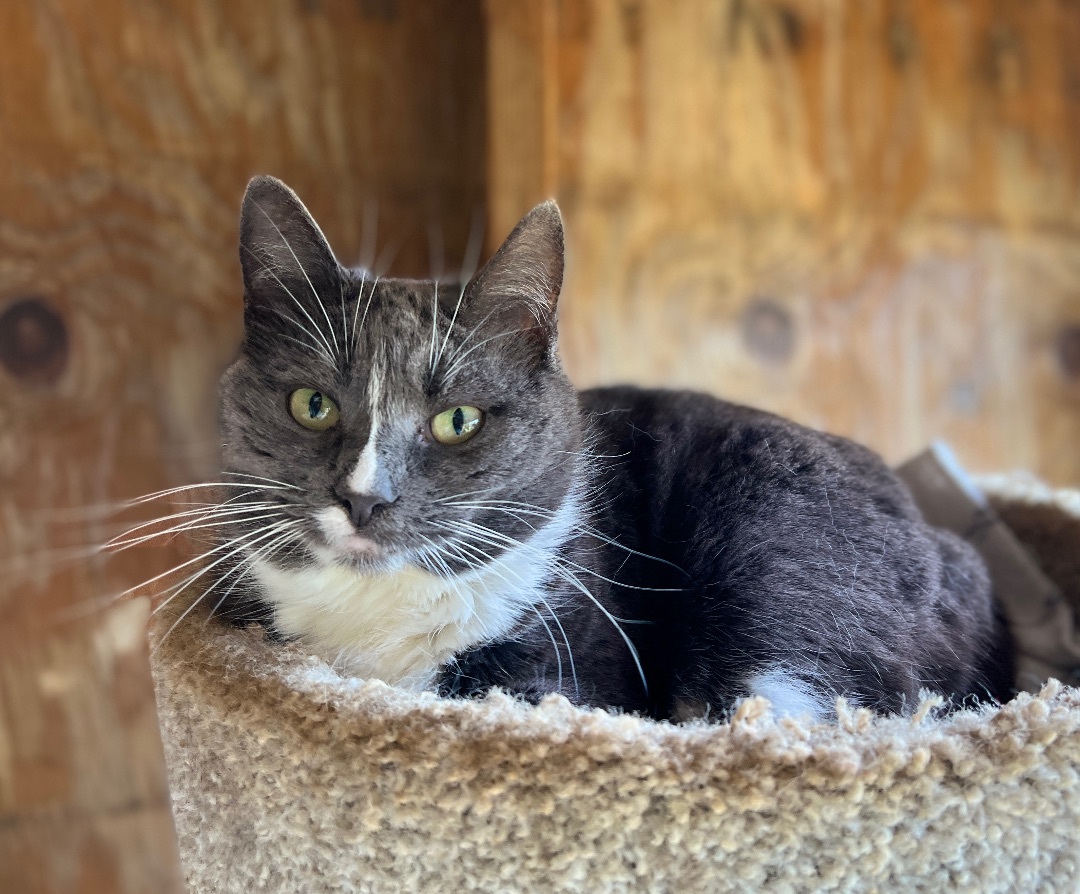 I LIKE RELAXING AND RECEIVING PETS FROM THOSE I TRUST! THE BASICS: DSH, gray and white ADULT FEMALE; EST DOB: 2012 ARRIVAL: November 16, 2013 HISTORY: Cecily was found as a stray on Sanctuary Lane. Cecily has been with us at CFC for over seven years now and has come a long way on her journey towards trusting people. She is shy at first but relishes in the attention of people who have gained her trust. Cecily prefers to spend her days relaxing on one of our enclosed patios. She gets along swimmingly with other cats and we are excited for her to continue opening up to us and showing off her personality.