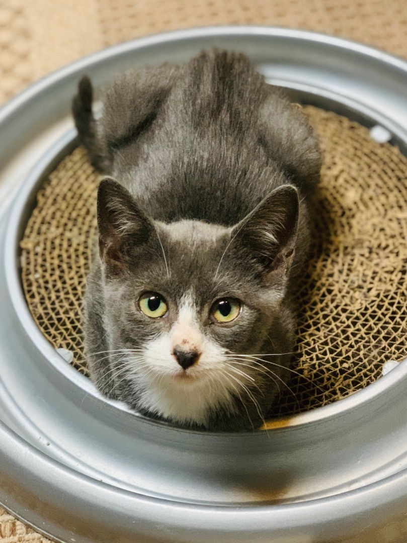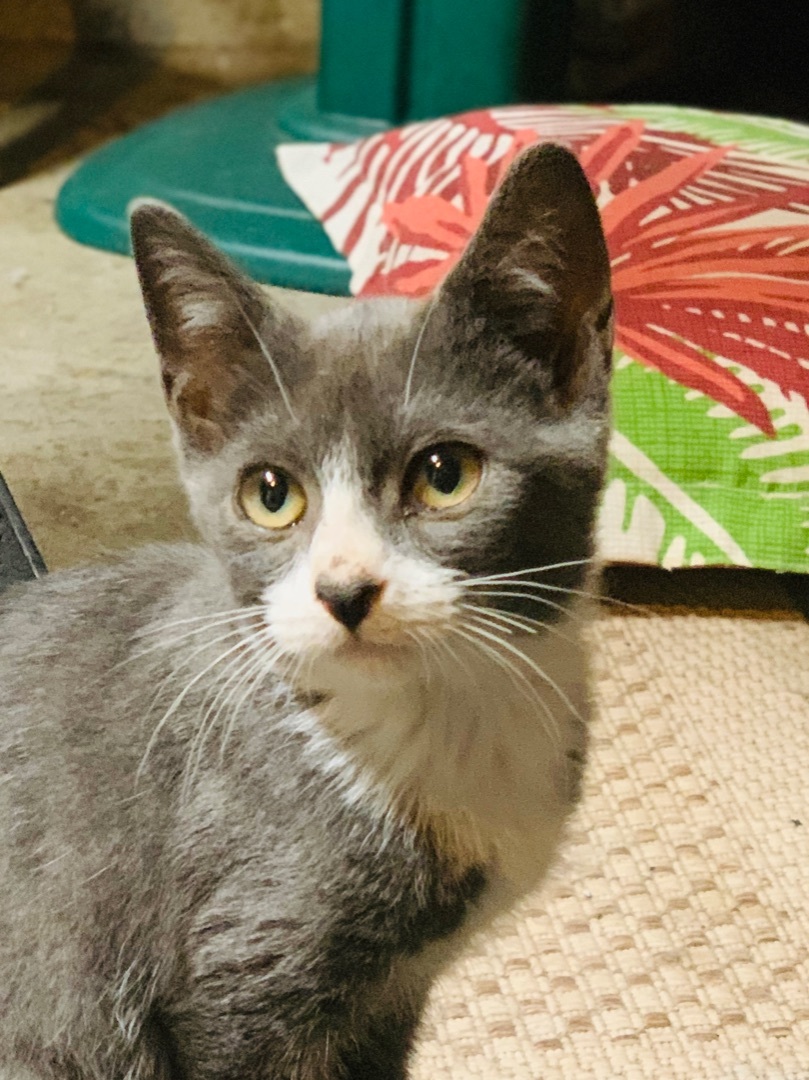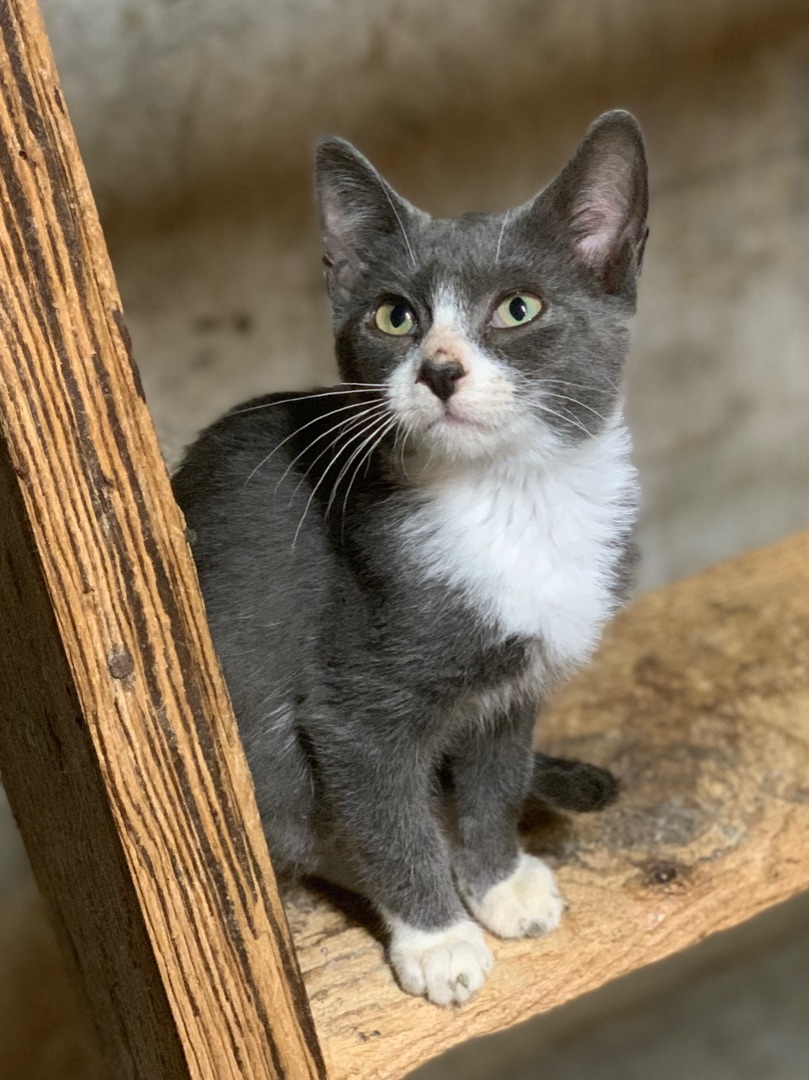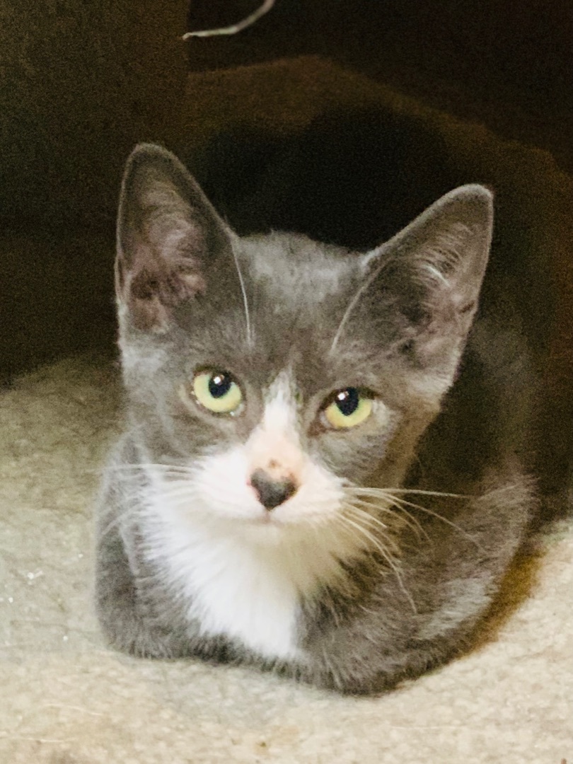 AGE: Baby (09/14/22) DESCRIPTION: DSH Blue and White LOCATION: PETS Shelter (114 W Main Street) - Panora, IA MY STORY: Beth, her two brothers, and her mama started showing up at a farm house begging for food. All of the kittens had very bad eye infections, were extremely thin, loaded with parasites, and showing signs of ringworm. Beth was the luckiest of the kittens; her eyes werent too bad and they healed with no scarring. Her brothers, unfortunately, each lost an eye. Beth is extremely small, very sweet and quiet, but also playful. She loves to cuddle. She loves attention. She is teaching herself to run on the big exercise wheel we have for kitties! There is nothing cuter than a tiny kitten running on the wheel! She would do great in a home with other kitties (or her siblings, Dane and Craig!) and very gentle, cat-friendly dogs. She is very small so please no small children. She is just too fragile. Medical: Her eyes have healed and there is no issue with them anymore. It does appear that all of the ringworm spots have cleared up and we will continue to check her prior to any adoption. We know that ringworm is a real pain! We deal with it all the time! If you have any other questions about this sweet little girl, please email us and we will get back to you as soon as possible. Thank you! MORE DETAILS: Inside-only home and must keep claws. The adoption fee for this kitty is $100. Adopt a pair of kitties for $150. Each cat and kitten has been: altered (spayed/neutered), vaccinated (age-appropriate) - rabies and distemper combo, microchipped, tested for FeLV (negative unless previously noted), and treated for fleas, ear mites, and worms. We ask that interested parties fill out a cat adoption questionnaire only if you are seriously considering adopting this sweet kitty. You can get the application by going to our website at "http://www.panorapets.com/adopt" and clicking on the "Cat Adoption Questionnaire" button at the top of the page. Once you have submitted the questionnaire, an adoption coordinator will contact you usually within 24 hours. Please be patient and thank you for your interest in this kitty. P.E.T.S. supports the "Paws Need Claws" Campaign. Cats are rather attached to their claws; please do not de-claw your cats.