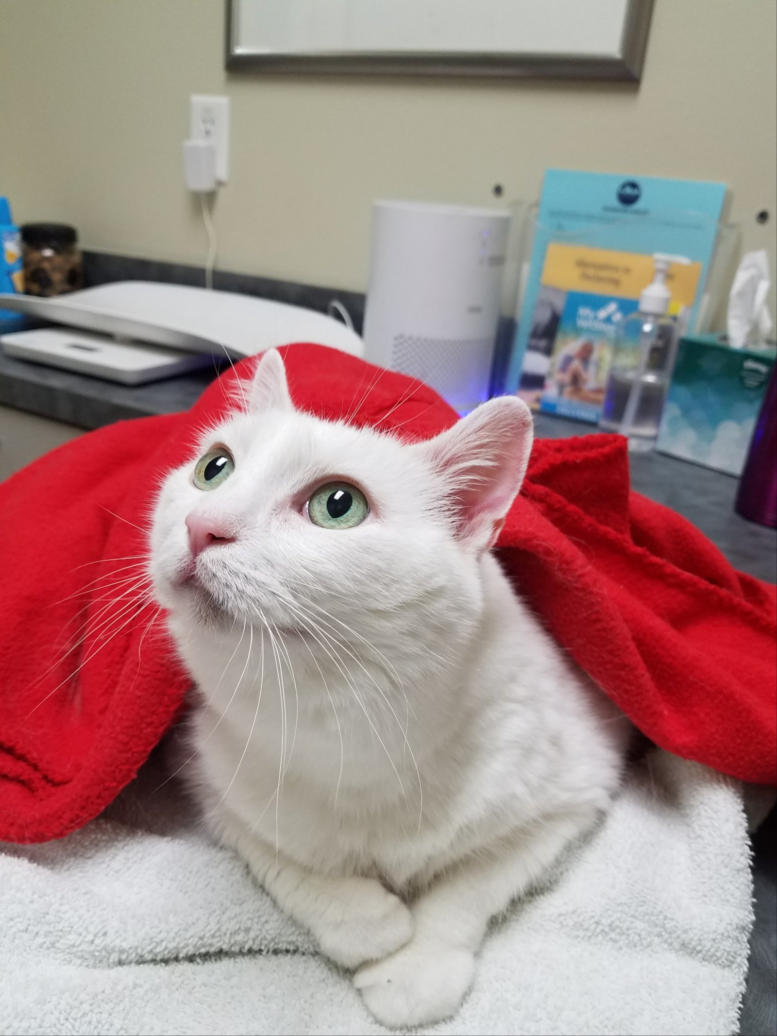 All of our cats are current on vaccines, combo tested (FIV/FELV) , spayed/neutered, microchipped, given rabies vaccine as age appropriate, flea treatment and dewormer as needed Michelle is an older, white girl who loves attention once she warms up to you, but due to her life, she can be slower to trust. The one constant she has had for the last few years is her BFF Portia, and the two love being around each other. Michelle was found in the street one day many years ago, and she was brought in and cared for by the family who had Portia. The two girls bonded, but then their family could no longer care for them, and rather than split them up, Cat Matchers took both girls in and committed to finding them a home where they could live out their senior years together. Michelle loves lounging in cat beds and will come ask for attention. She also loves curling up on the bed with you, but isnt as confident with jumping, so she would appreciate having pet stairs available for her. She has had some dental issues, and had to have 10 teeth removed. At some point before coming to Cat Matchers, she was also front paw declawed. This means she may have some future medical expenses to keep in mind when considering bringing her into your family. She does, however, love being at the vet. Michelle is also very persistent about her wet food, and is the type to start judging you for being late with dinner 30 minutes before dinner time. AS-NEH1-22 (AW)**Want to adopt? Get started here: https://catmatchers.org/adoptions/adoption_application_page/ **Do you or someone you know want to help in saving cats lives? Become a Foster Parent! We are ALWAYS looking for more people to become qualified Foster Parents. For more information on the Foster Program or helping in other ways, click here: https://catmatchers.org/volunteer/ You CAN make a difference!!!! **Not quite ready to adopt, but would like to donate to the care of this or other animals during their temporary stay with Cat Matchers? Visit this link: https://catmatchers.org/donate/ Follow us on Facebook, Instagram, Twitter: @CatMatchers