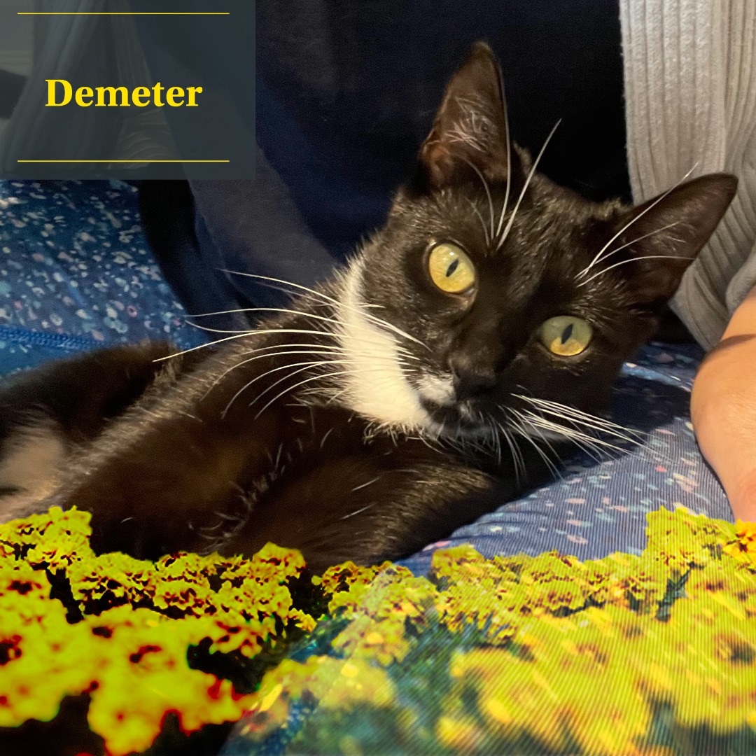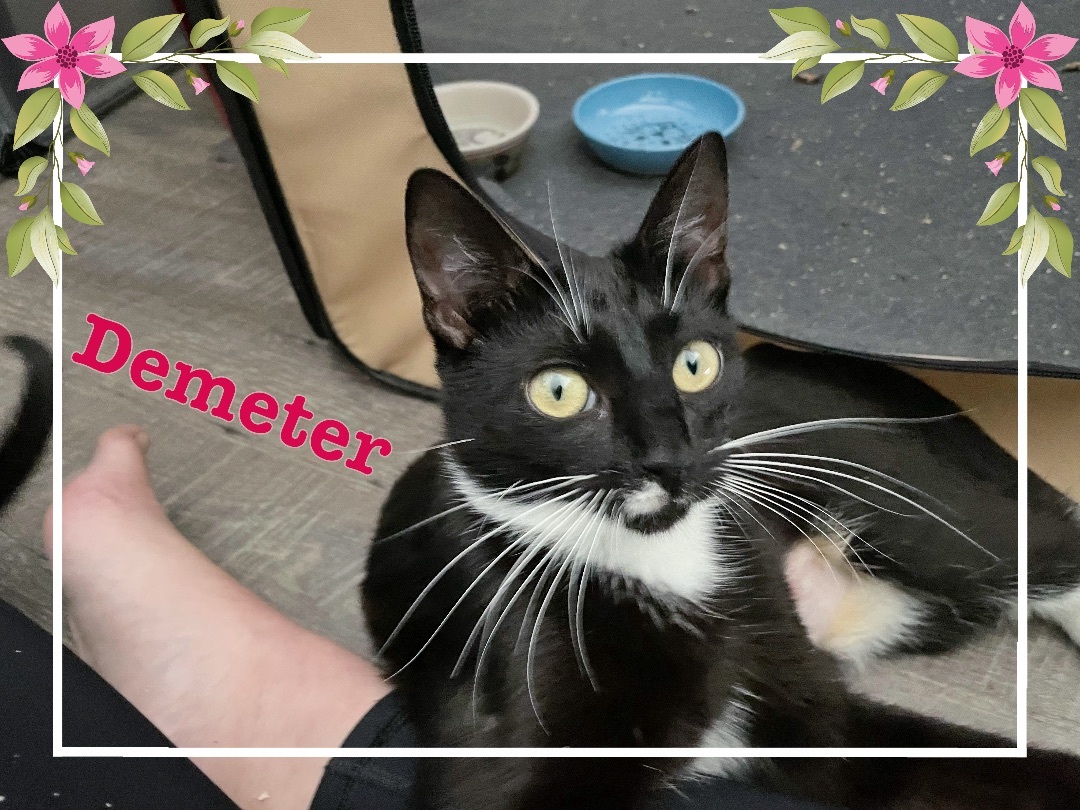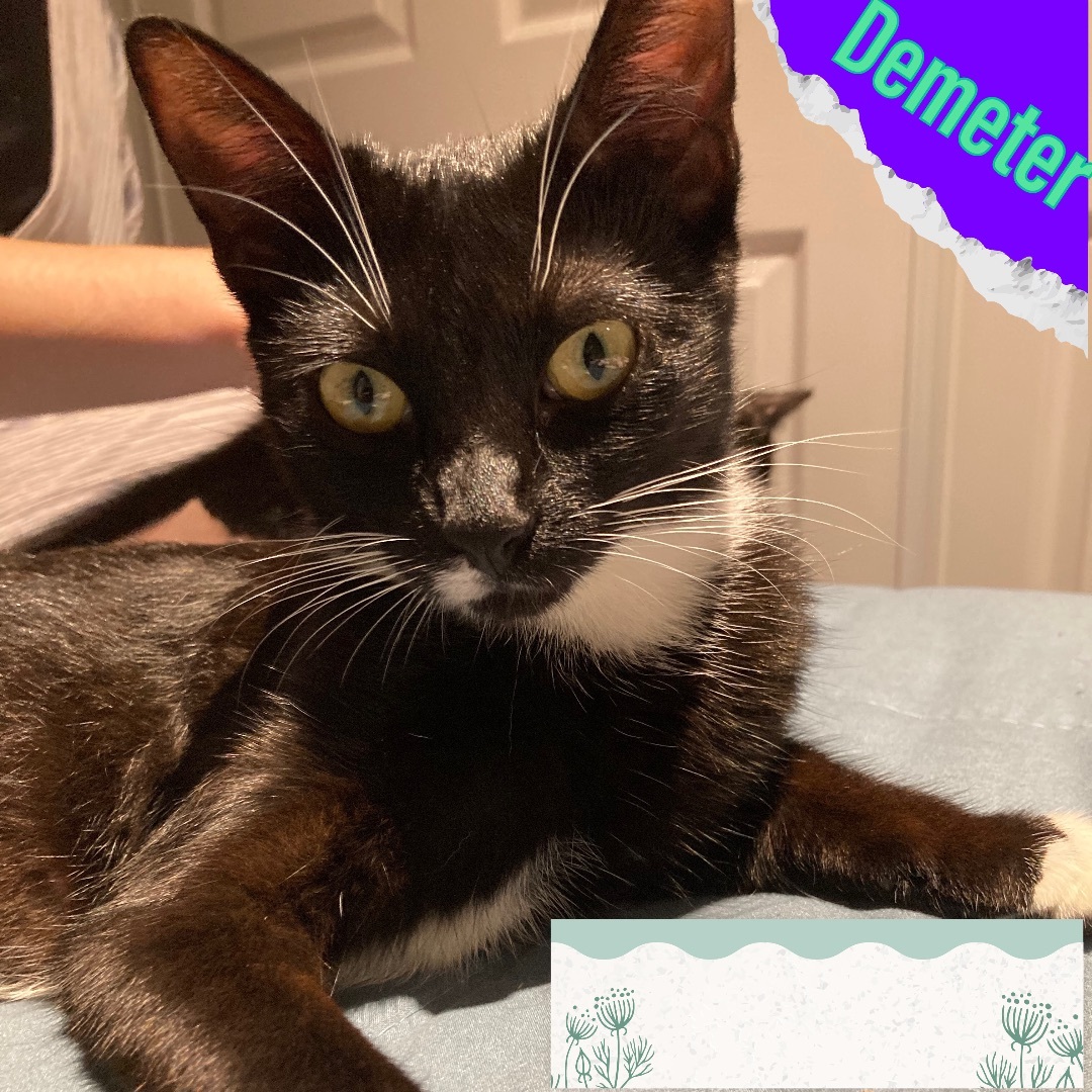 Demeter is an absolute sweetheart of a cat. She is small in stature but large in the love she has to give. This poor girl was impregnanted at an early age (we think 6-7 months!) and was not ready to be a mama, she was outside , emaciated and tired. With a little help (and a lot of good food) from her amazing foster hoomans, she grew into a wonderful mama who is finally ready to find her perfect forever home that will love her to bits ! Demeter shares her gratitude with every person she meets - loud purrs, head butts, and biscuits are always on the menu. When not getting loves, Demeter is still very young and playful and craves interaction! She can be adopted solo or with one of her babies (aptly named Arion , Athena , and Persephone ) . She really enjoys human attention and has been around older children , so we think she would be fine as an only cat if your home has a bunch of love and attention to give to her that she so craves ! She is spayed , vaccinated, negative for FIV and Felv , microchipped , treated for any potential fleas and parasites and ready to fly! Email nycatcoal@yahoo.com to inquire !