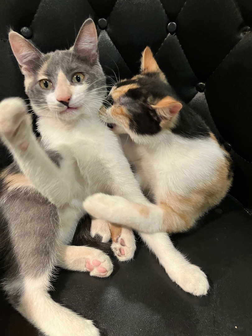 These two are so much fun. Maple is a black orange and white Calico, Willow is the dilute Calico. Maple is the chill sister while Willow is a ball of energy! They are a bonded pair and will only be adopted together. They are currently available for preadoption only. If you are interested, all adoptions begin with an adoption application. Click on the “More About Cat Utopia" Button for the link to the application.