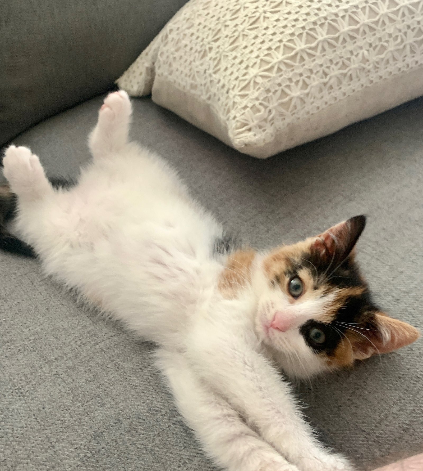TO ADOPT: Complete an application at www.baltimorecats.org/application Meet Kali! Kali is very playful and curious. She loves chasing the laser, but not with as much ferocity as her siblings. She likes to be picked up and held and will purr on contact or just making eye contact with you from across the room. Shes an easy-going, gentle kitten. Shes very gentle when playing and always comes up to take naps and sleeps on the bed at night regularly. She gets along great with the other foster cats in her home. She needs to go to a home with another kitty friend. Kali is fixed, vaccinated, disease tested and microchipped and will come home with all medical records. Ready to adopt? Visit our website for more information and to get started! www.baltimorecats.org/application