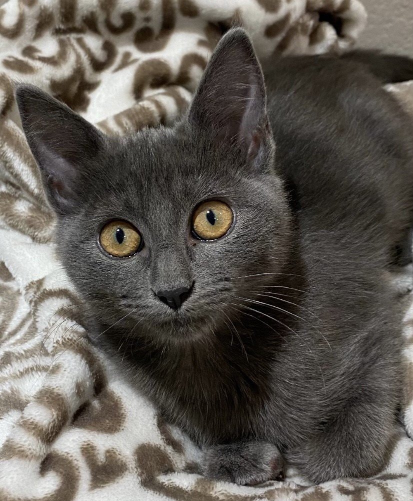 This is Chamomile, a member of the Herb litter who was born in a greenhouse during a torrential rain storm. She came to Take Me Home Pet Rescue when one of our volunteers was contacted by a friend who asked for help when this feline family was discovered in his yard. This Russian Blue girl has orange eyes that are simply spectacular. Loves to sleep with her foster humans. Will sneak into your bed once you are asleep to snuggle. It is super cute as is she. Loves her toys and watching the birds outside. A teeny bit shy but warms up quickly. Chamomile would do best with another kitty friend. Her estimated birth date is May 21, 2022. Please visit our website at tmhpr.com for more information about our organization and our available pets. Safe pet home visits & vet checks are required. For this reason, we only adopt locally - in the Dallas area. If you are interested in meeting or adopting one of our available pets, please fill out the adoption application found at: tmhpr.com . Dogs Puppies (under 12 months): $335 Dogs (over 12 months) $275 Large-Breed Dogs (over 75 lbs) $300 Cats Kittens (under 12 months) $200 Cats (over 12 months) $135 Rescued Declawed Cats* $160 * TMHPR does not endorse the declawing of cats