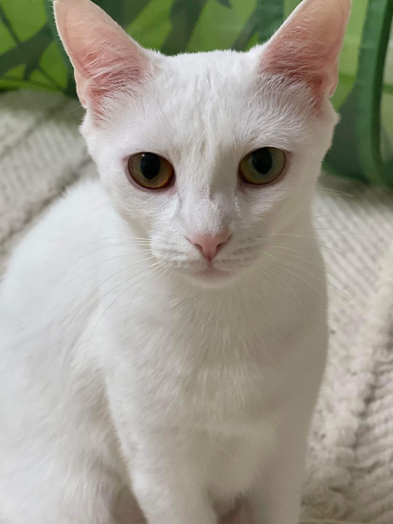 **PLEASE READ CAREFULLY** Please read about our adoption process on our website. Submitting an application is the best way to start the adoption process. Please note that inquiries we receive through this platform (Petfinder) without specific questions asked, will not be responded to, due to the volume we receive.** Meet Myrrin! She is a beautiful almost all-white beauty with some tabby markings on her tail and ears only. Myrrin is very confident and friendly and will jump in your lap pretty quickly for attention. She can be a little fussy around other cats, but does ok with polite cats, but being the only Queen in her home would also make her very happy! Myrrin has a sister (Iclyn) who she does get along well with and the two would make a great pair. Myrrin came from a poor housing situation, so she ready to live in the comforts and luxuries of a real home now!