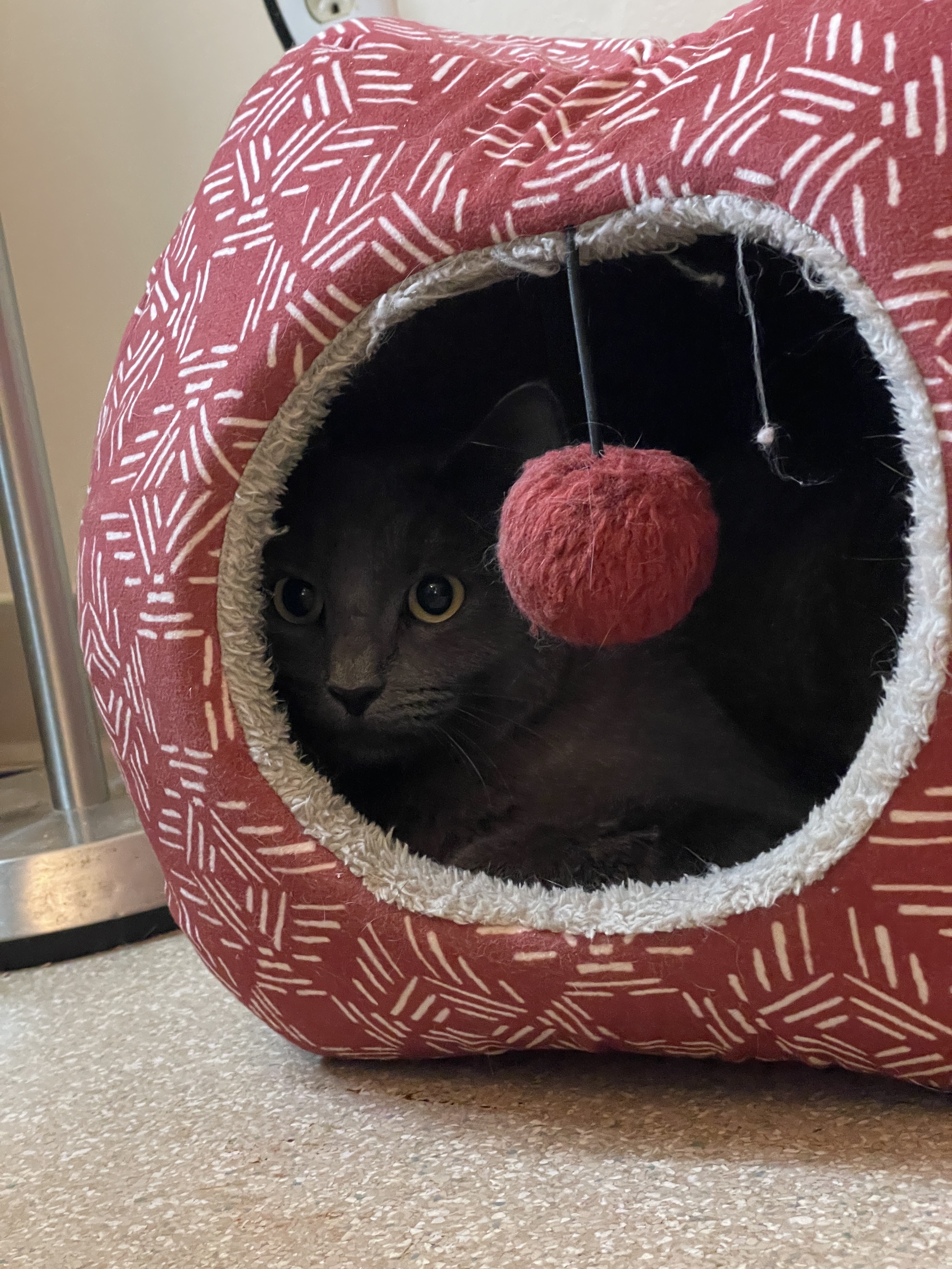 Hopscotch is a beautiful 1 year old girl who came to us as a stray with her kittens. Hopscotch is still working on trusting people, but temptation treats is a good way to win her over! She needs a slow approach, so she would not do well in a home with young kids. Hopscotch is spayed, micro-chipped, and up to date on vaccines. We will take inquiries on a first come, first served basis via email. If you have not completed our questionnaire, please do so here: https://www.shelterluv.com/matchme/adopt/MER/Cat. If you have already submitted an application with us, you do not need to do another one, please email adoptioncounselor@mrfrs.org if you are interested in adopting Hopscotch!