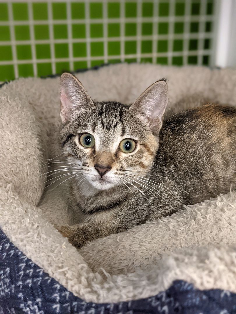 Chardonnay is an adorable baby girl born on or around 3/2/22. She is a super cute & sweet girl. She’s an energetic kitten who loves to play and explore. When she is ready for a nap, she will look for a lap with a soft throw. She’ll make a great addition to any home. Chardonnay is already spayed and currently in a loving foster home waiting to be adopted! We are doing a courtesy cross posting of this kitten for our “Friends Group” TEARS of Seminole County. They have taken the responsibility of this cat into their organization and will be overseeing the adoption through TEARS. If you are interested in adopting this particular kitten, please go to www.tearsofseminolecounty.org and fill out their online adoption application. All cats and kittens are current on their vaccines, microchipped, spayed and neutered and ready for adoption. The adoption fee through TEARS is $85. A TEARS representative will be in touch to go over your application and arrange a meeting with the kitten. To see more animals available for adoption through TEARS, please visit their petfinder at https://www.petfinder.com/pet-search?shelter_id=FL1328
