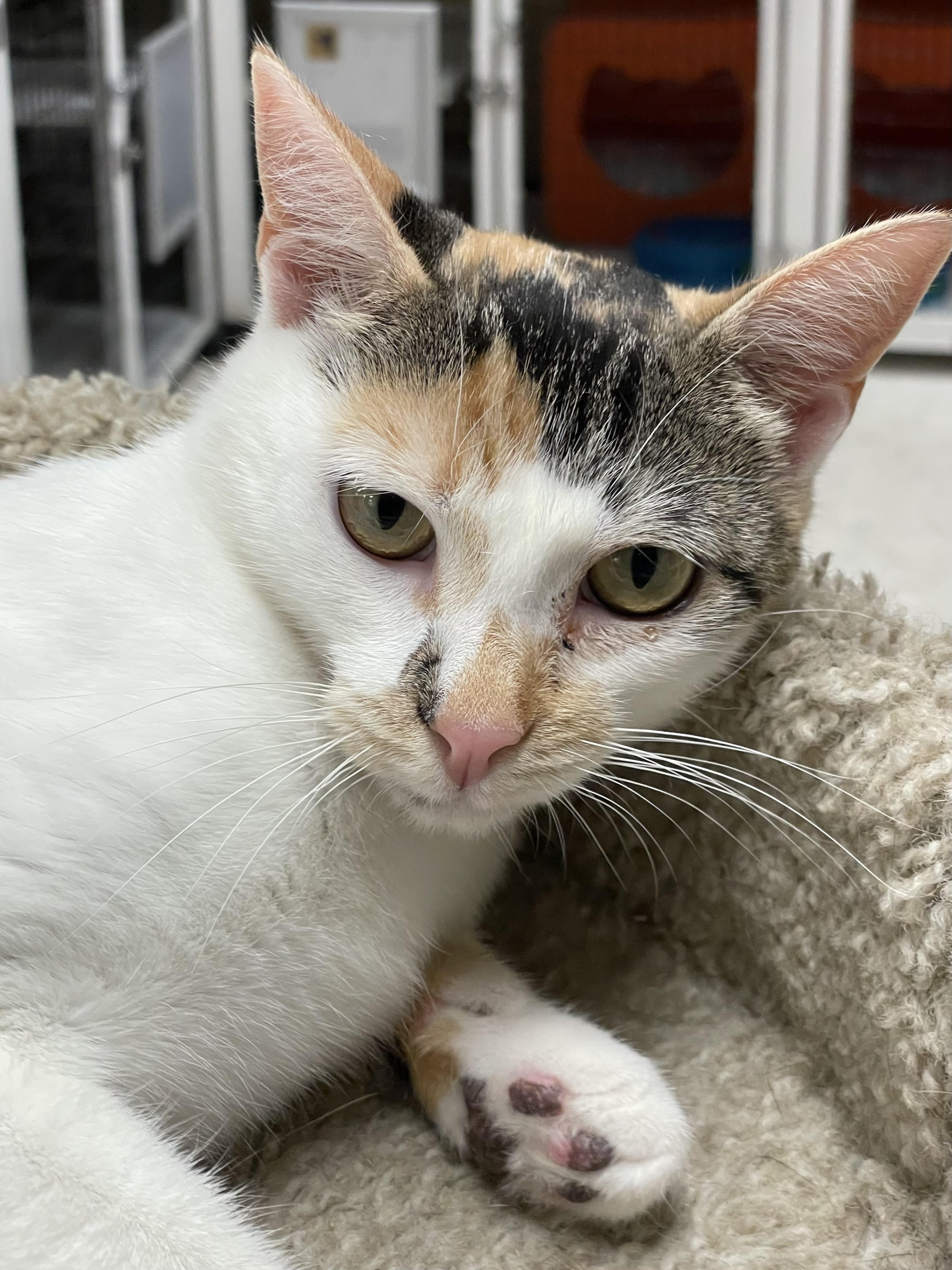 HISTORY: TEMPERAMENT: AGE: born approx. 08/29/2021 MICROCHIP #: 981020041494905 DATE OF STERILIZATION: 06/14/2022 VAX RECORD: FVRCP #1: 06/13/2022, FVRCP #2: pending, FVRCP expires: pending; Rabies expires: 06/14/2023 FELV/FIV test: pending ADDITIONAL INFORMATION: ADOPTION FEE: $100 If you are interested in adopting this cat, please fill out our Adoption Application completely. In the space provided on the form, please include contact information for three (3) personal references to whom you are NOT related or shares your home. For more information, please visit our website at www.fandfnm.org [Santa Fe Animal Svcs. Permit #22-001]
