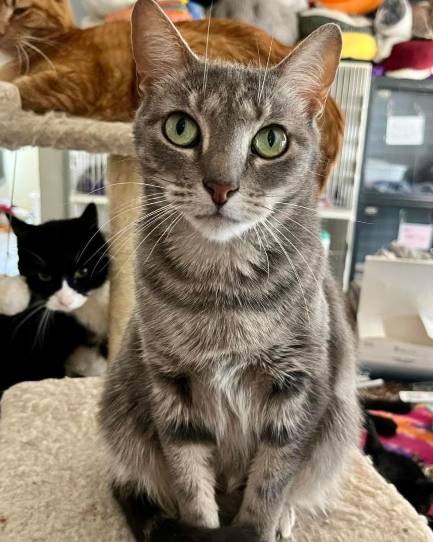 If you think you need a “life coach” in your life than Mustang Sally is your girl. She came to us as a feral protective mother after giving birth to a litter of kittens several years ago and while all her kittens have been adopted Mustang still remains at the shelter judging but not judging us. Mustang Sally is a petite girl with a spicy personality. She will probably never be a lap kitty but she will come up for a pet and then be done with you so if your looking for company but not a best friend then Mustang is your girl. https://www.sbanimalrescue.org/adopt