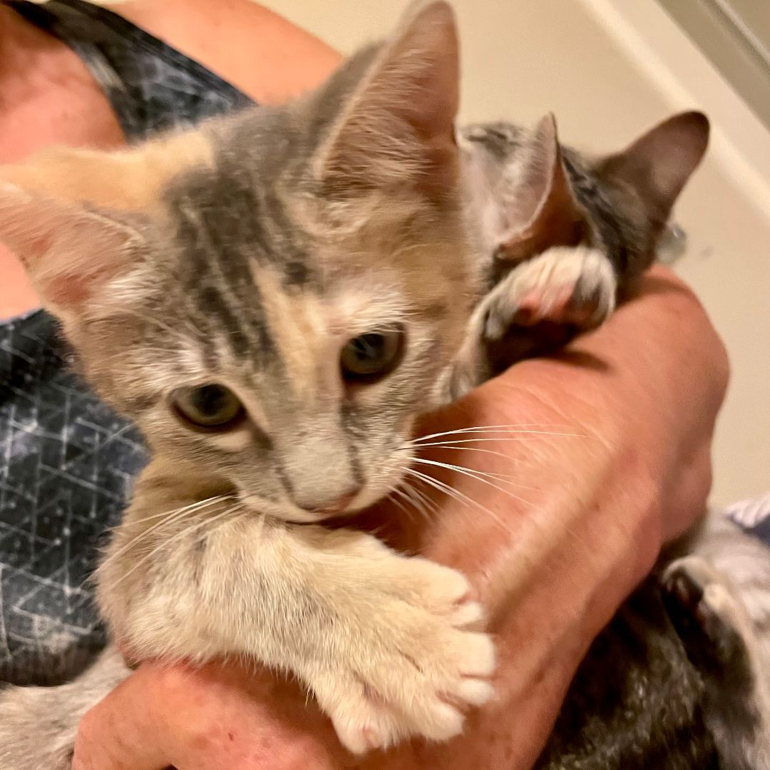 Peachy came into rescue/foster care with her sister and brother. Kittens are happiest when living with a kitty friend. Please email details about the home you have to offer.