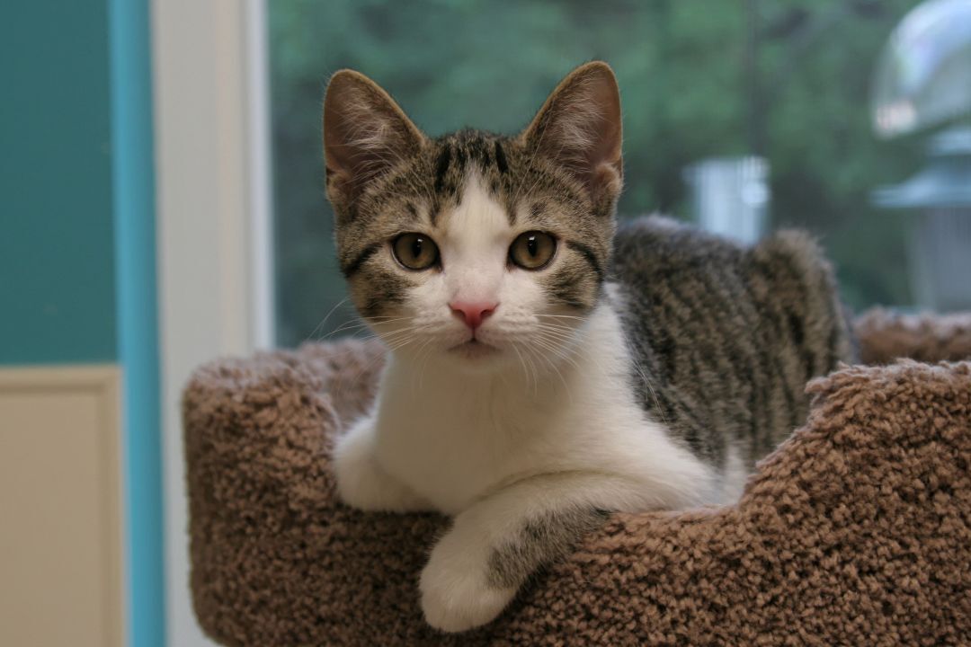 Lilly and her four siblings were found in a taped-up box in a ditch along the road. The good Samaritan who found them brought them to Paws Animal Shelter so they could be cared for. They are all super sweet, loving kittens, who like all kittens LOVE to play and be held. When you sit on the floor with them, they climb all over you. They share a room with another litter of kittens, and they quickly got used to one another. They all love to chase toys and wrestle with one another. Shes ready to be adopted, so stop by and meet this sweet little kitten! You can put in an application to adopt her, and maybe one of her siblings or friends to keep her company. If you ask for more information via Petfinder, please include a phone number for a more-timely response.