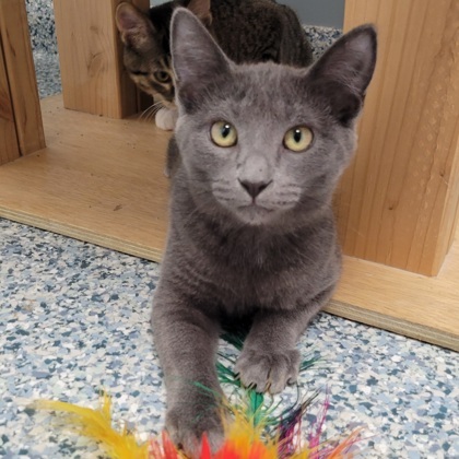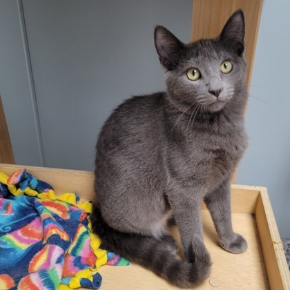Hi....Stormy here. I am all gray except for a couple of white areas on my belly. I was a little shy when I came to my foster home but with the help of my very patient foster moms, Ive become much more confident and engaging. I like wrestling with my foster mate as were about the same size and love lounging on the window ledge to watch whats happening outside. Ive discovered that I like to be gently brushed for short periods of time and will lie next to my foster moms to have this done. I would love to find my forever home with a more confident cat, and think I would do ok with either another youngster or an older cat. Im currently living with Penn and Jackie and would get along with either of them. Will you be the forever home Im looking for? This cat attends adoption events at our Verona Adoption Center. READY TO ADOPT? To complete an adoption application for this cat, please visit http://angelswish.org/adoption-process/ and indicate Amy as the contact for this cat. INTERESTED IN LEARNING MORE? Please email AmyG@angelswish.org. All cats/kittens are up-to-date on vaccinations, dewormed, spayed/neutered, tested for FeLV/FIV, and microchipped prior to going to their new homes.