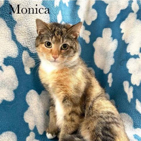 Several months ago, Pet Search was providing TNR on a farm in Amity... we called this colony our "Friends colony, naming the cats after the characters from The sitcom "Friends. Two of the colony members stayed with Pet Search as we felt that they could be socialized due to age. Phoebe adapted quickly to being handled and was adopted quickly; her sister Monica took quite a bit longer to socialize. We are happy to report that after several months of constant handling, Monica has decided that she likes people and being petted. She still is a little nervous regarding v being held, but gets better each day. Monica is now 8 months old and is a very pretty tabby calico. She has been felv/fiv tested, vaccinated and spayed. Monica needs a quiet home to allow her to continue to be the indoor kitty that she was meant to be. An Application can be found at https://www.shelterluv.com/matchme/adopt/PAPS/Cat or petsearchpa.org.